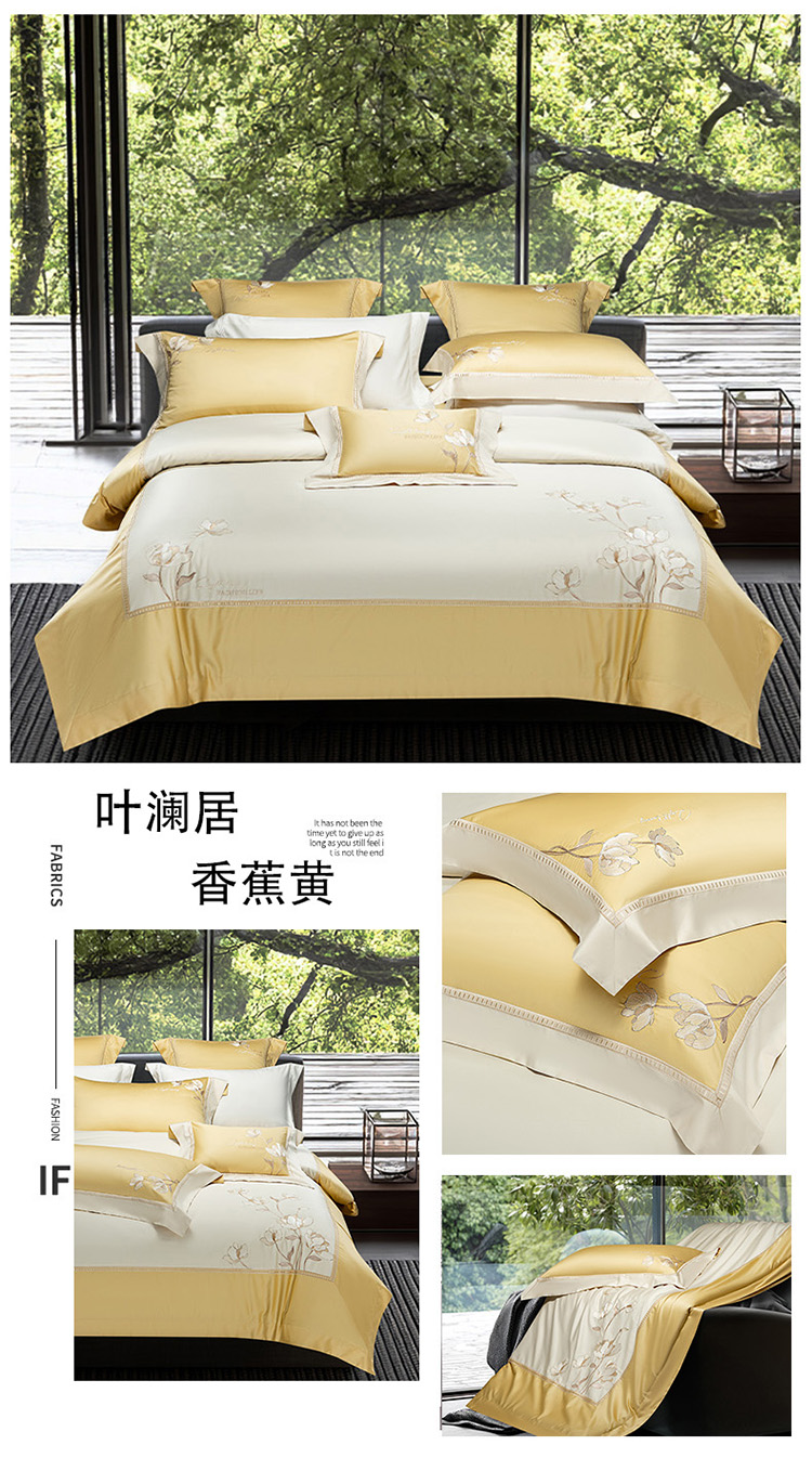 诗黛尔家纺 2026春夏新款长绒棉刺绣四件套 叶澜居系列 叶澜居-香蕉黄