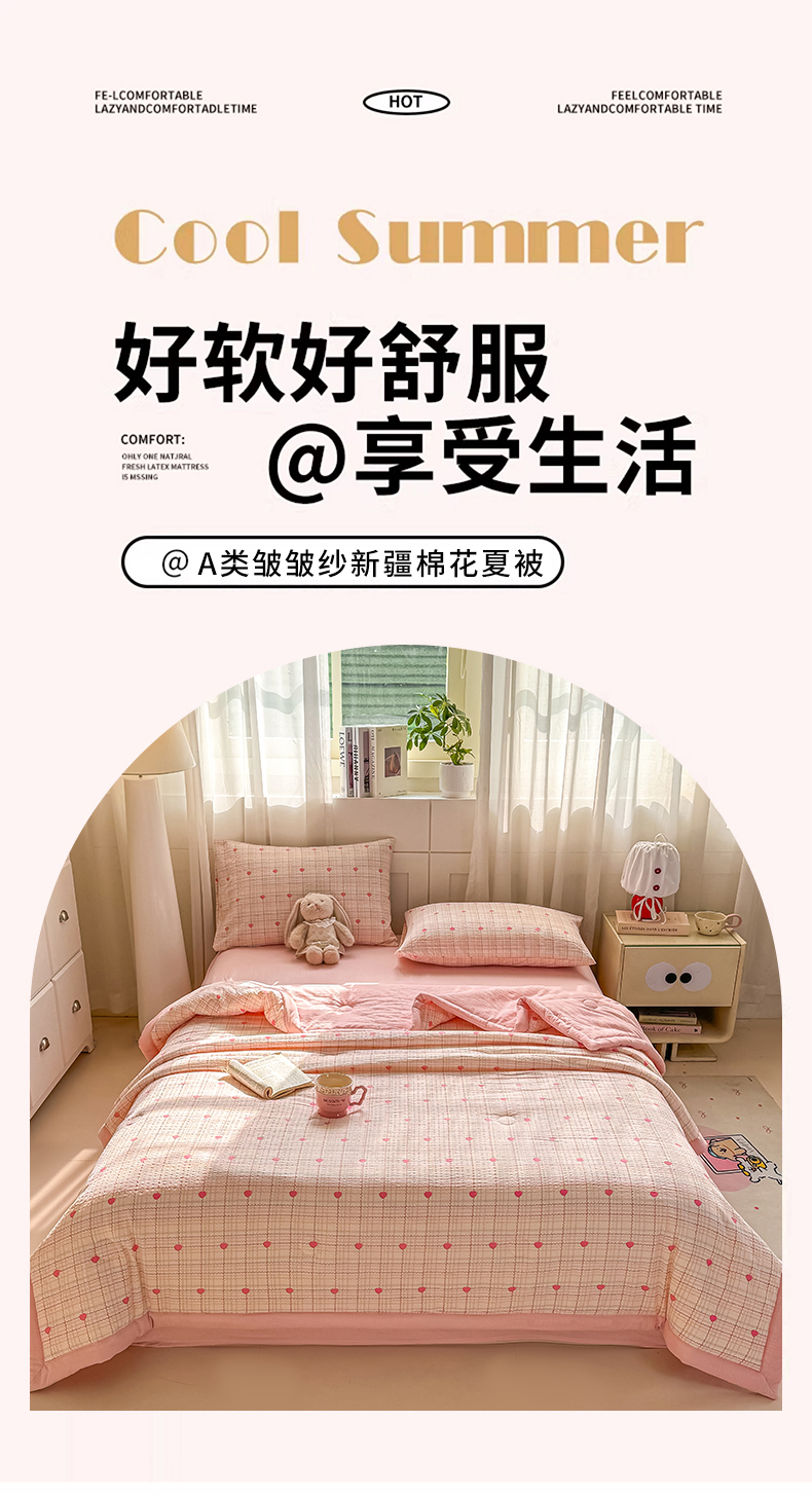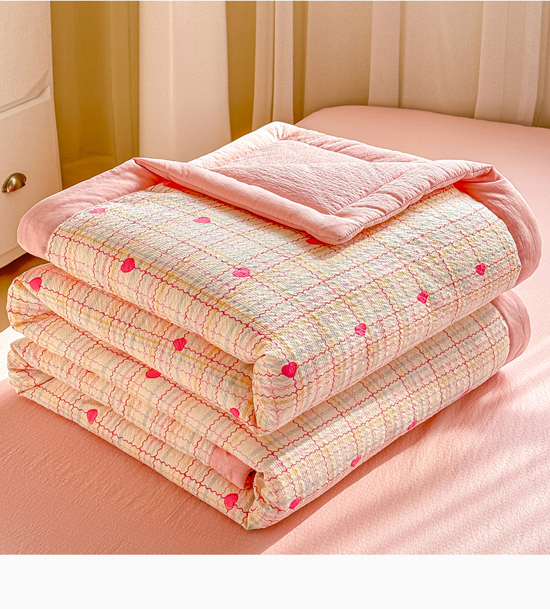 (总)家喜爱 2026年新款双层皱皱纱新疆棉花夏被夏凉被空调被【可开专票 普票】,格格心,海盐蝴蝶结,黄色小碎花,绿野迷踪,萌萌星星人,墨夏凉花,蔷薇语,素描花,童年摇梦,樱桃碎碎念,春日樱桃园,璀璨小狗,蛋糕派,粉豹纹Kitty