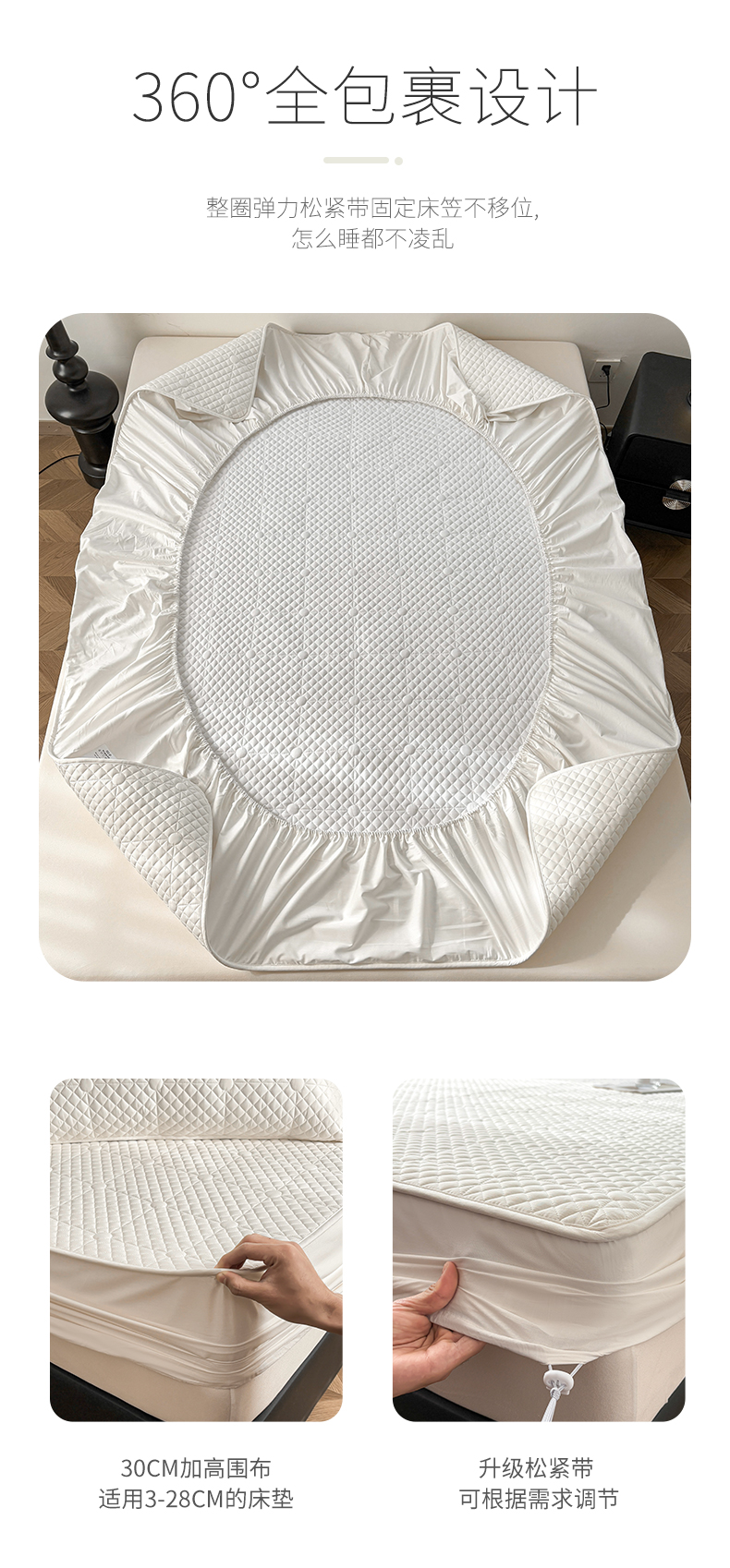 (总)居眠 2024新款水漾防水夹棉床笠床罩床垫保护套子,水漾 米白,水漾 粉色,水漾 灰色,水漾 卡其,水漾 绿色,水漾 雾蓝