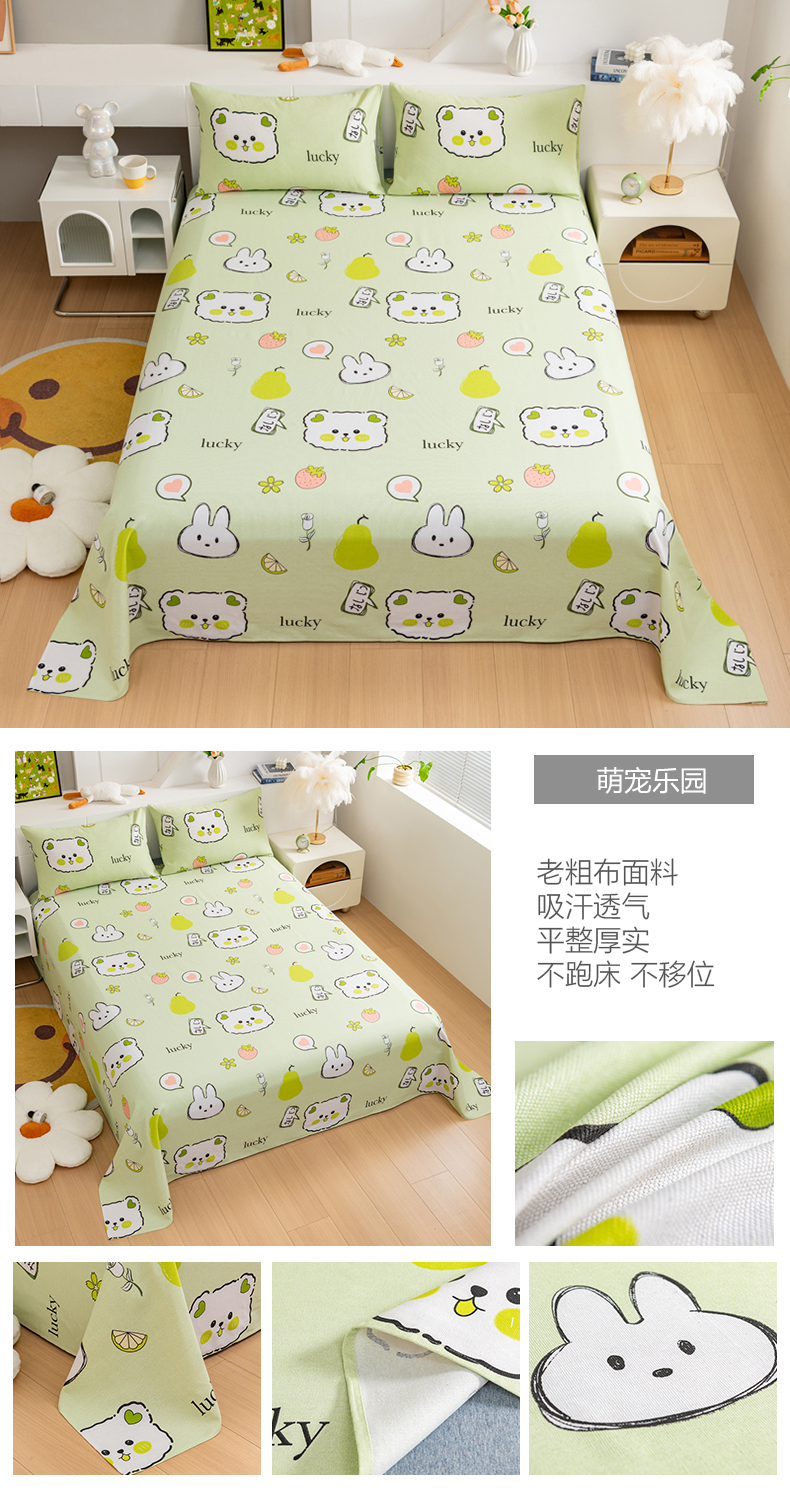 (总)2025新款老粗布卡通花卉床单系列-单床单,竹趣,爱心花朵,朵朵兔,花园熊,滑板狗,酷酷熊,绿意盎然,莓影缤纷,萌宠乐园,诗意花坊,恬静,童梦乐园,熊猫宝贝,绚丽,幽雅