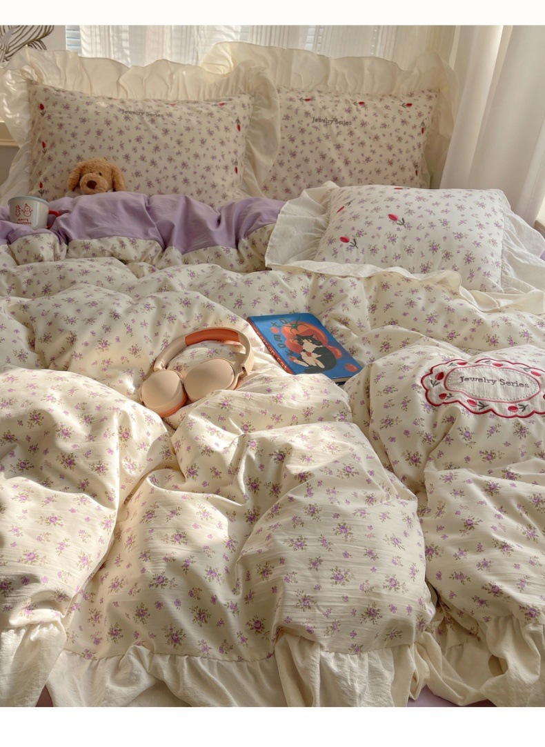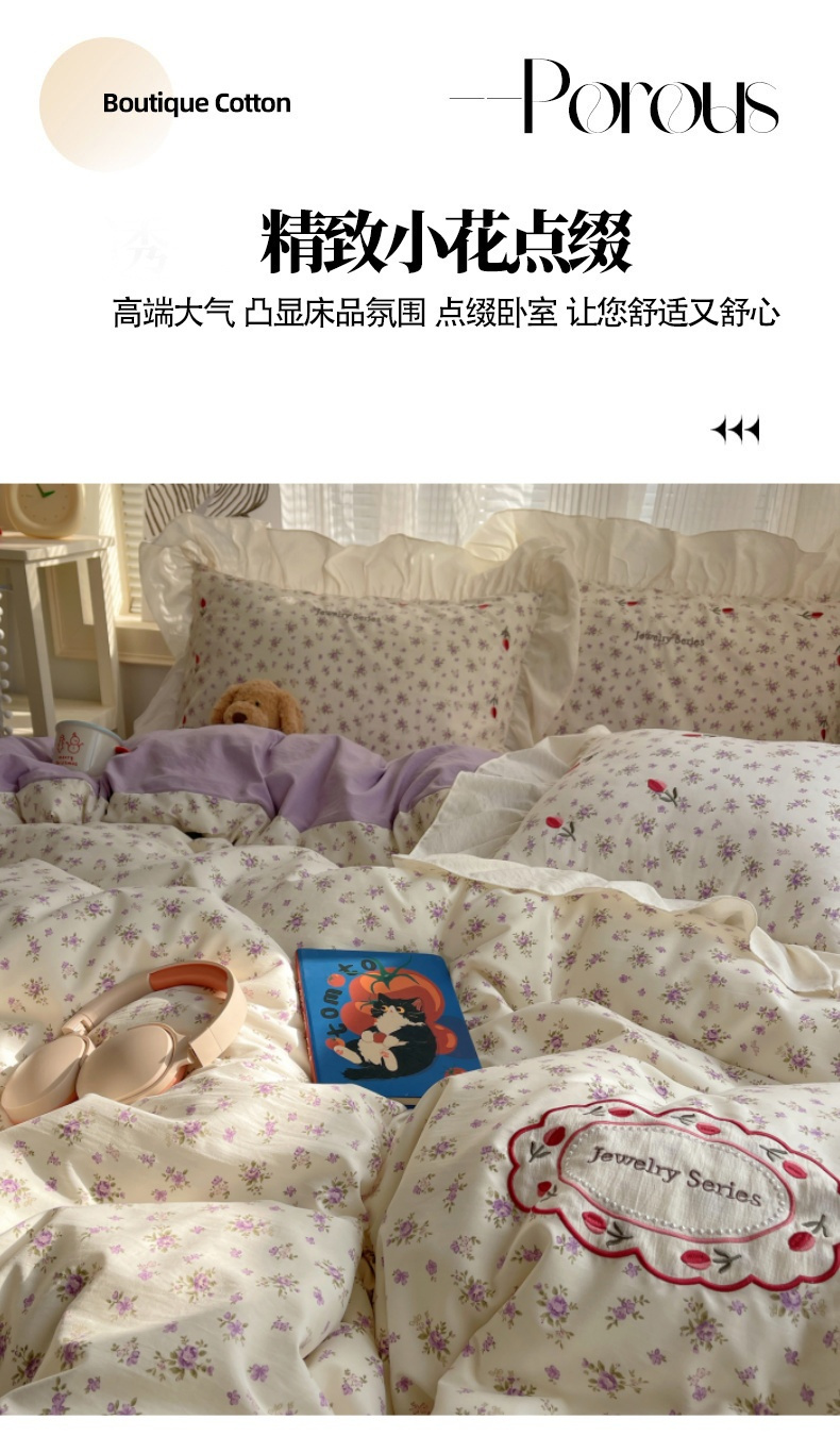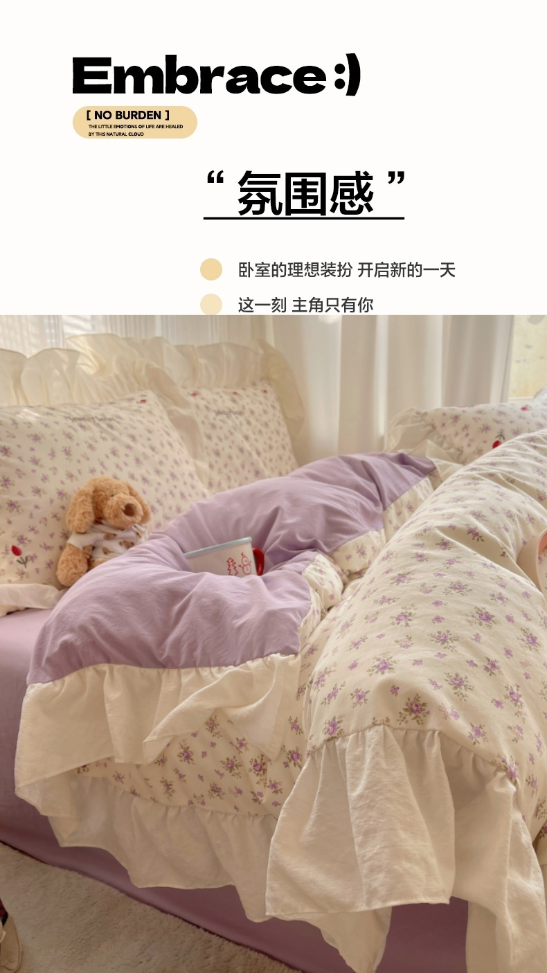 当前位置: 91家纺网 > 商品网购 > 床品套件 > 四件套 > 其它四件套 > 梦舒羽 2026新款A类云朵棉亲肤四季款刺绣1.8m四件套席床单宿舍绣花1.5米三件套 欣欣花语-紫(刺绣款)