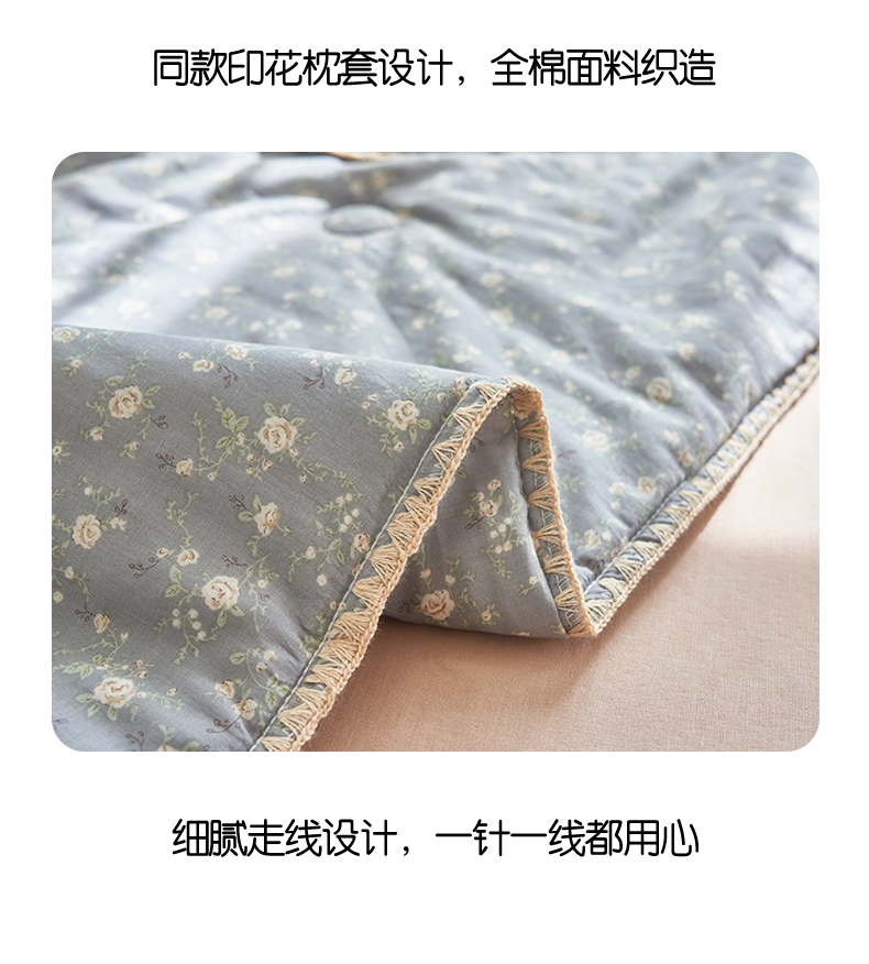 当前位置: 91家纺网 > 商品网购 > 被子 > 夏被 > 恬思语家纺 2026春夏全棉双层纱棉花夏被空调被夏凉被四件套贝壳边系列 蓝汐-灰