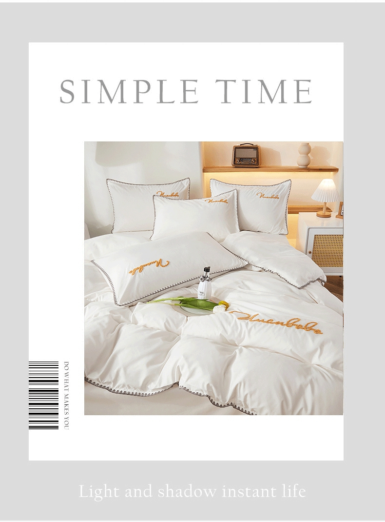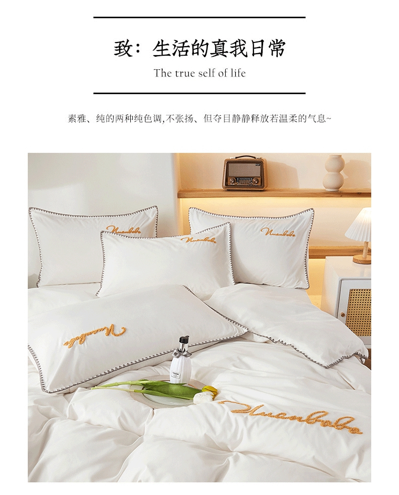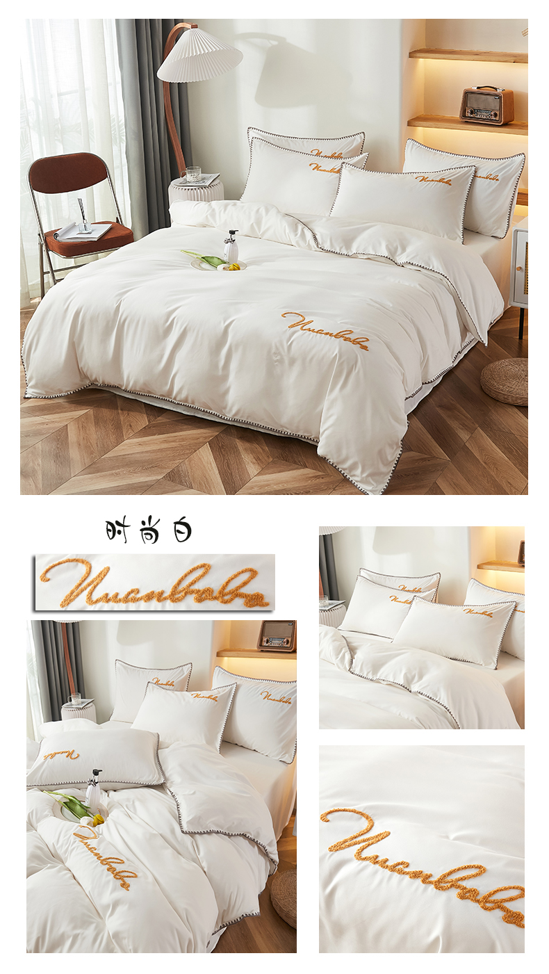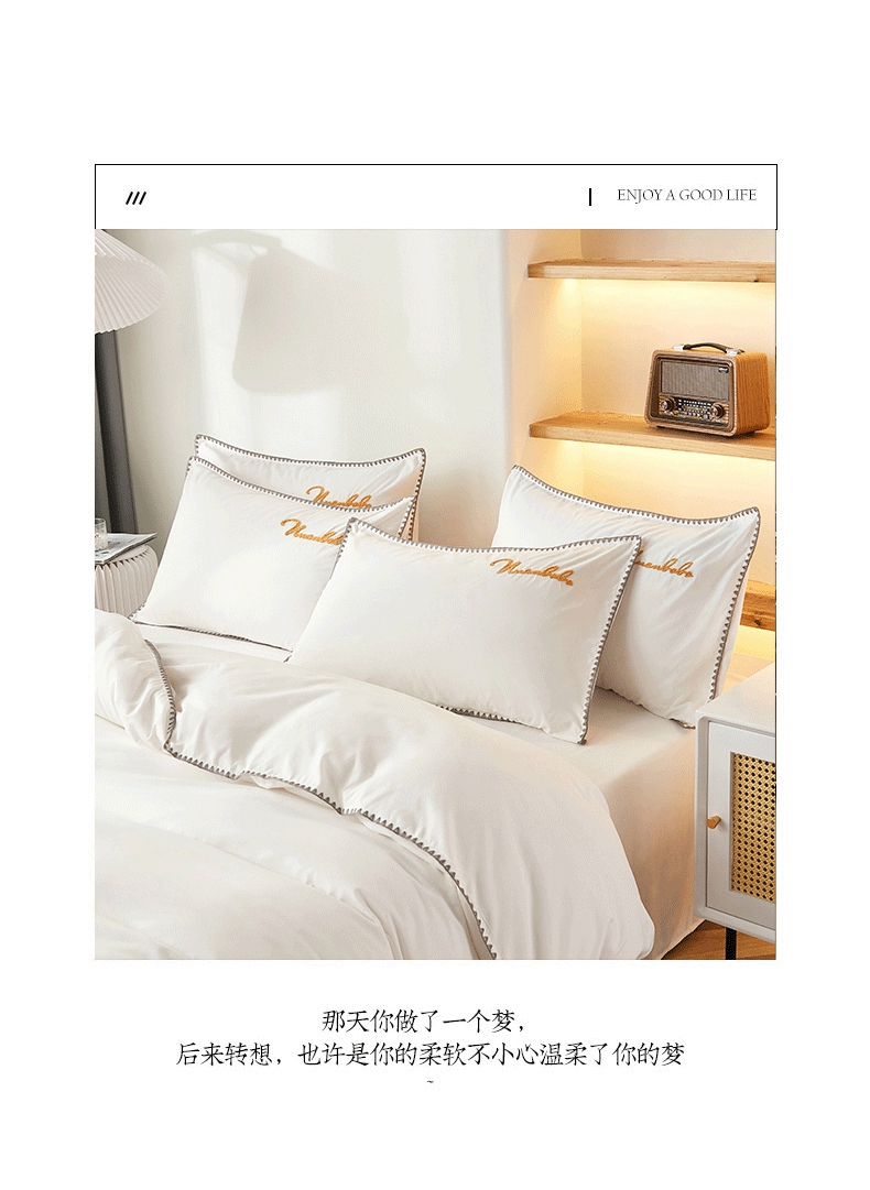 (总)啊雅家居 2026新款40S全棉飞边预留缩水款酒店民宿宾馆四件套一套可订制,白色
