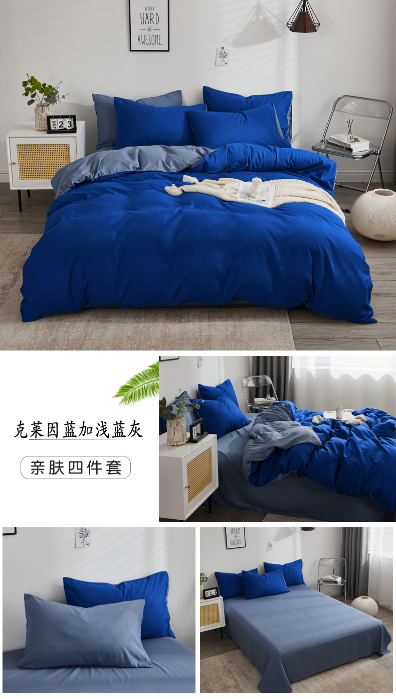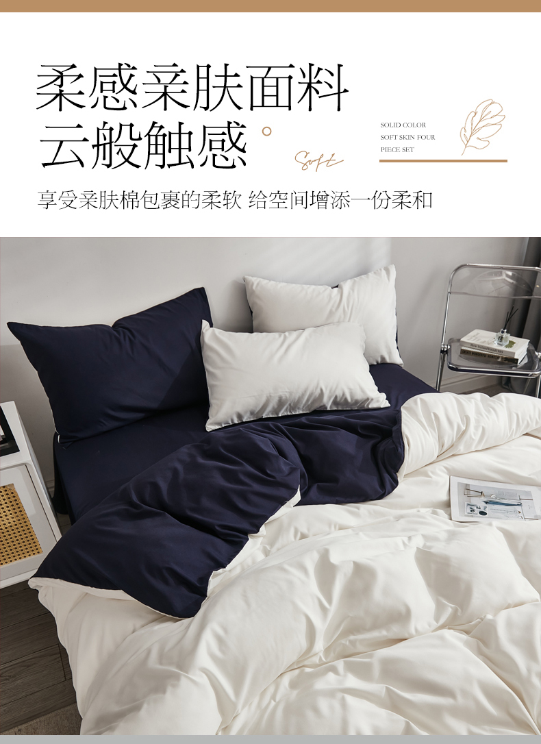 (总)啊雅家居 2025新款ins简约学生宿舍双拼纯色磨毛四件套可订制logo,白加藏青,白色,草绿,红色,克莱因蓝加浅蓝灰,米白加深灰,浅灰加深灰,浅灰,深灰,天空兰加黄,天空兰加浅灰,天空兰