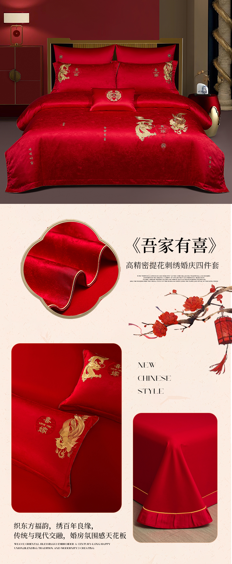 商品名称:婚庆四件套高精密提花加刺绣结婚喜庆直播爆款【控价不低于580】 吾家有喜