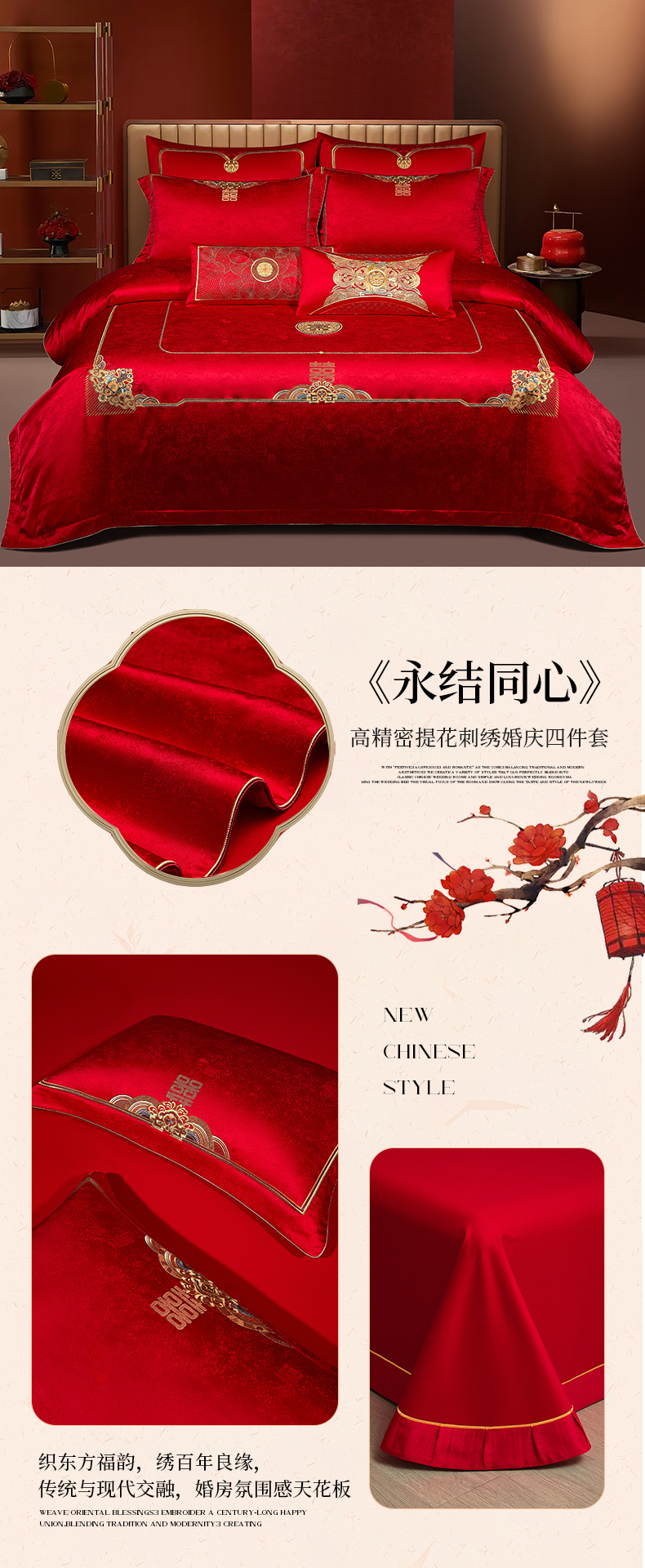 婚庆四件套高精密提花加刺绣结婚喜庆直播爆款【控价不低于580】 吾家有喜