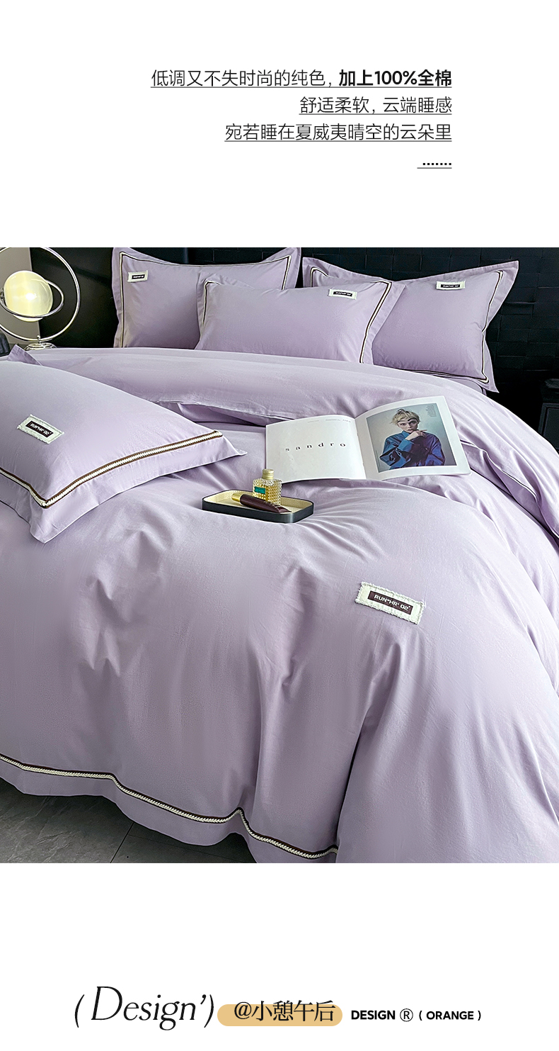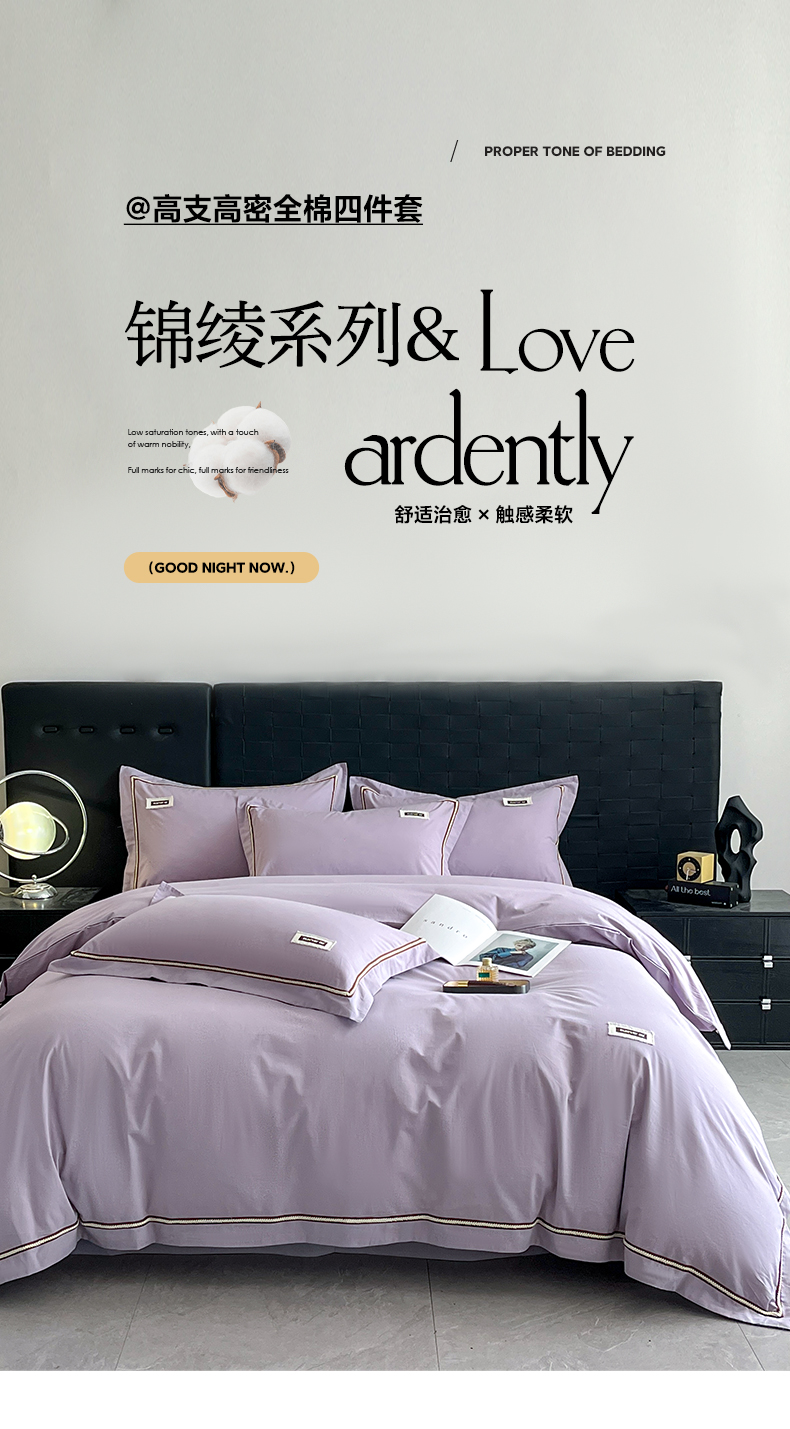 当前位置: 91家纺网 > 商品网购 > 床品套件 > 四件套 > 全棉普通四件套 > 佳汐蓝家纺 2026春夏新款高支高密全棉纯棉四件套-锦绫系列 锦绫-丁香紫