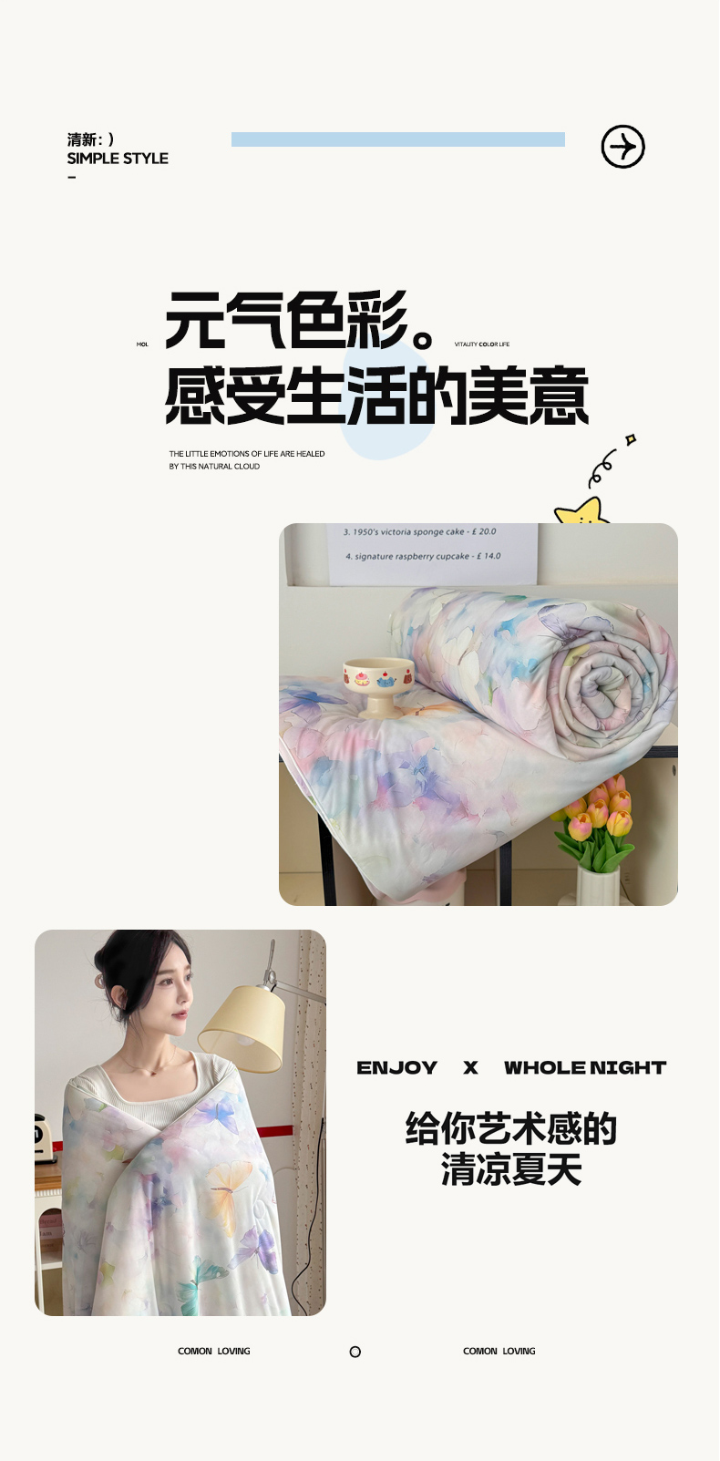商品名称:默忆 2026新款凉感丝印花大豆纤维夏被空调被夏凉被 意境迷人