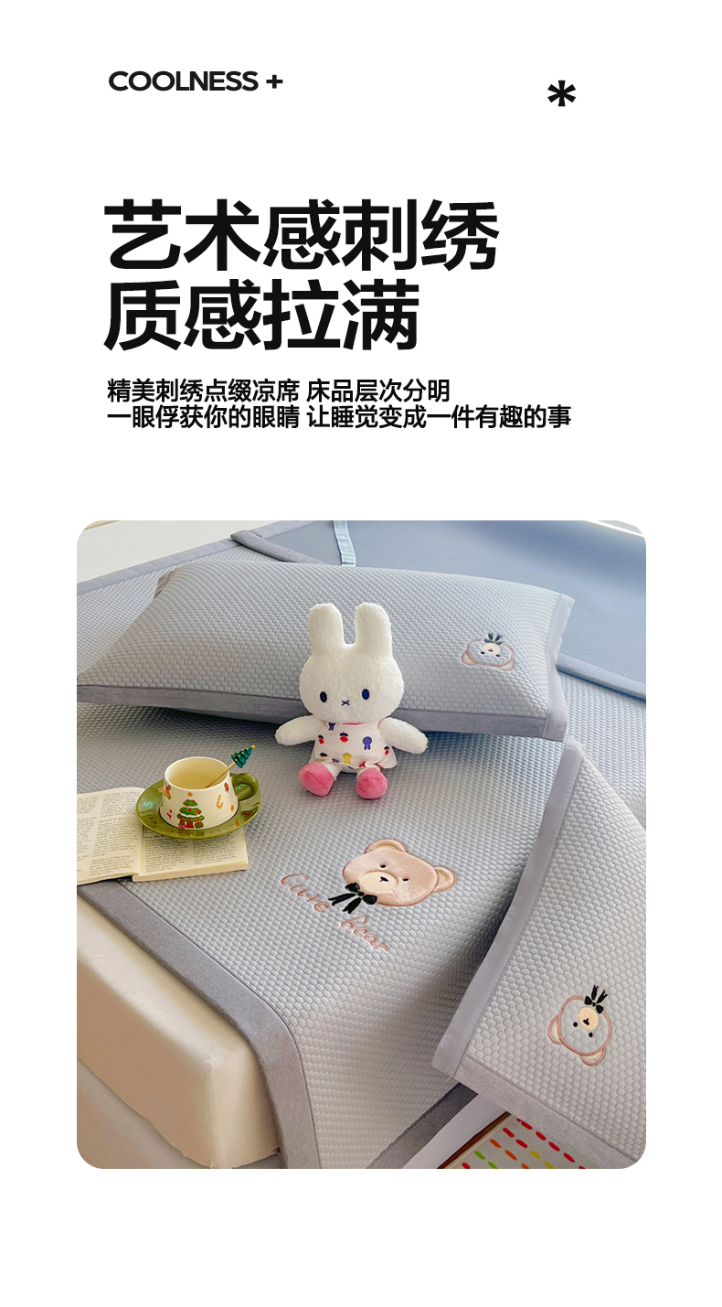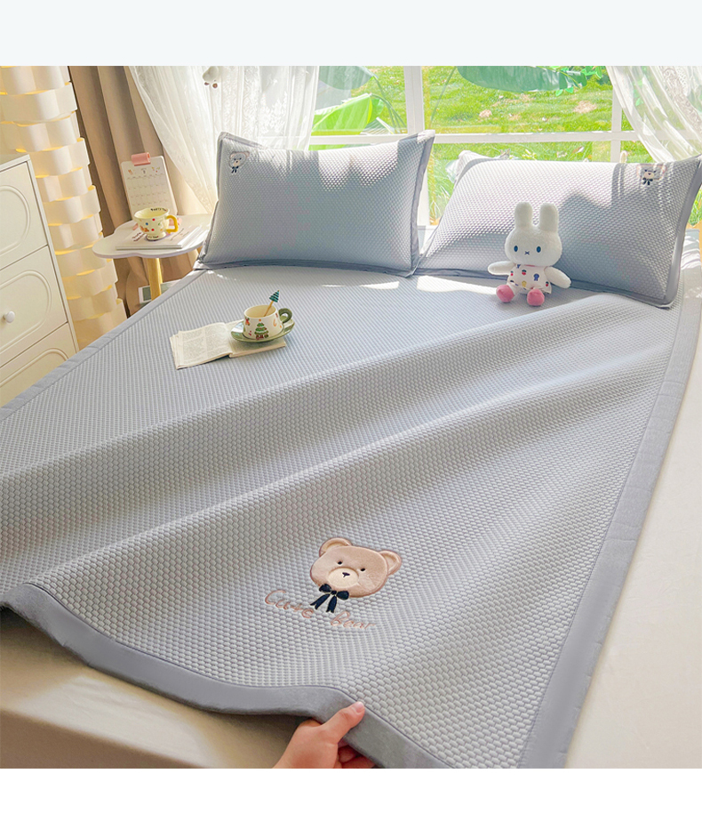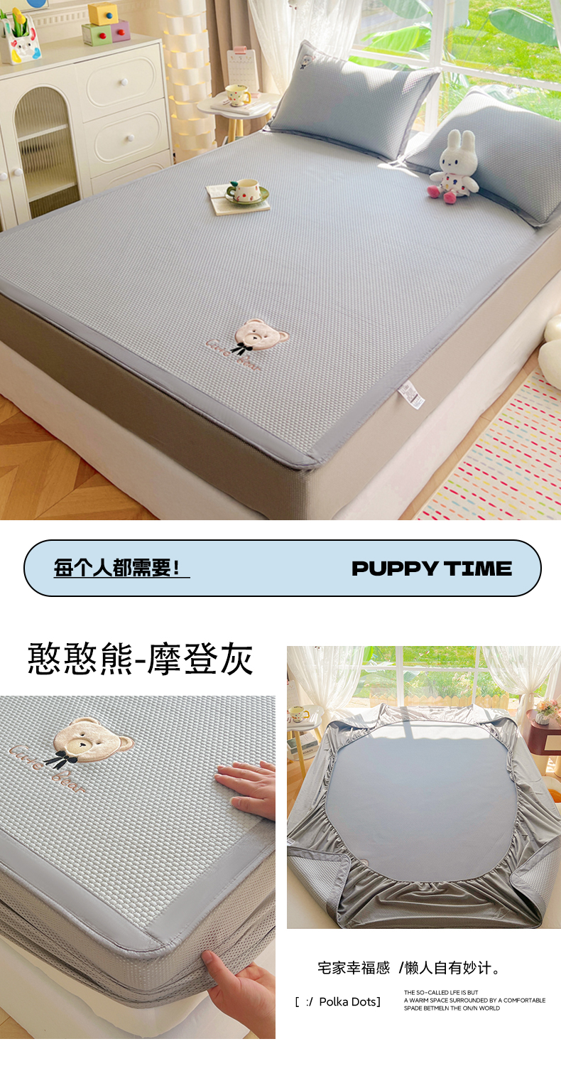 当前位置: 91家纺网 > 商品网购 > 床上用品 > 凉席 > 其他凉席 > 卡初家居(原微来) 2026春夏新款A类乙纶冰豆豆凉感席绣花席凉席席子-憨憨熊系列 憨憨熊-摩登灰