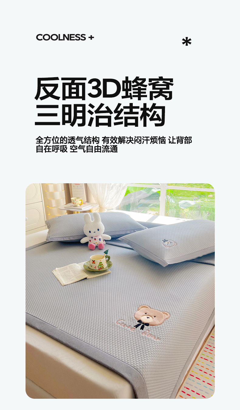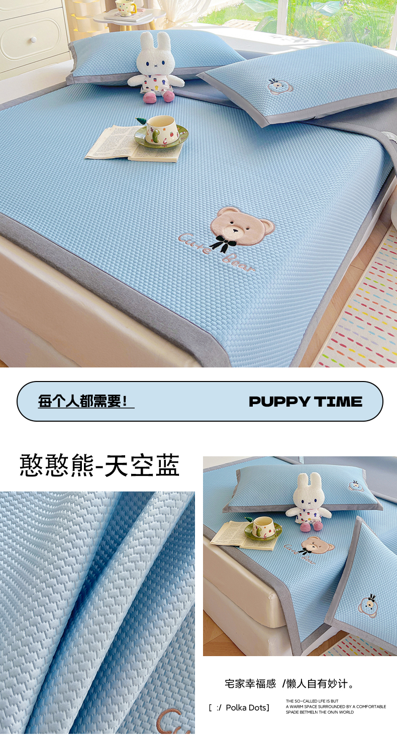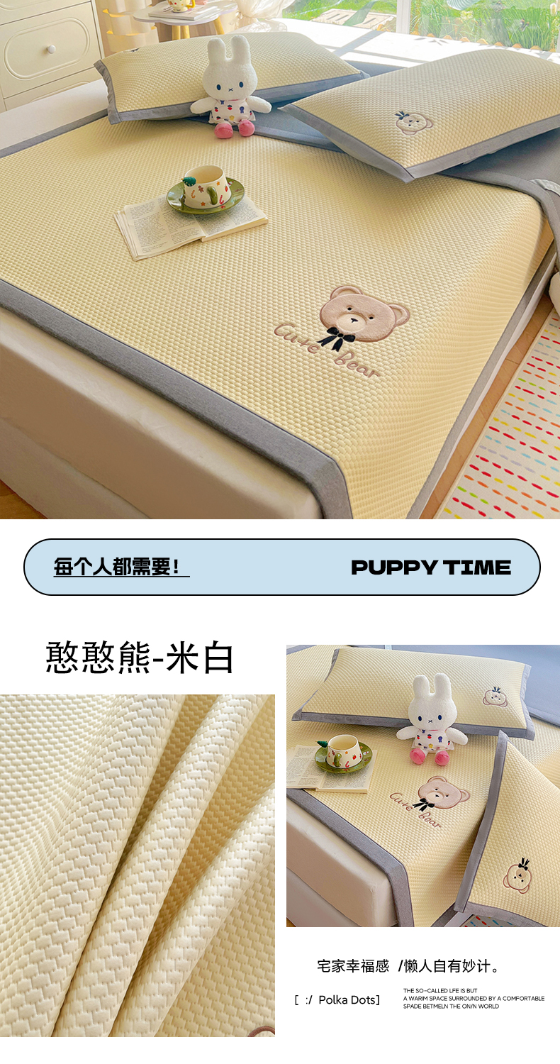 当前位置: 91家纺网 > 商品网购 > 床上用品 > 凉席 > 其他凉席 > 卡初家居(原微来) 2026春夏新款A类乙纶冰豆豆凉感席绣花席凉席席子-憨憨熊系列 憨憨熊-摩登灰