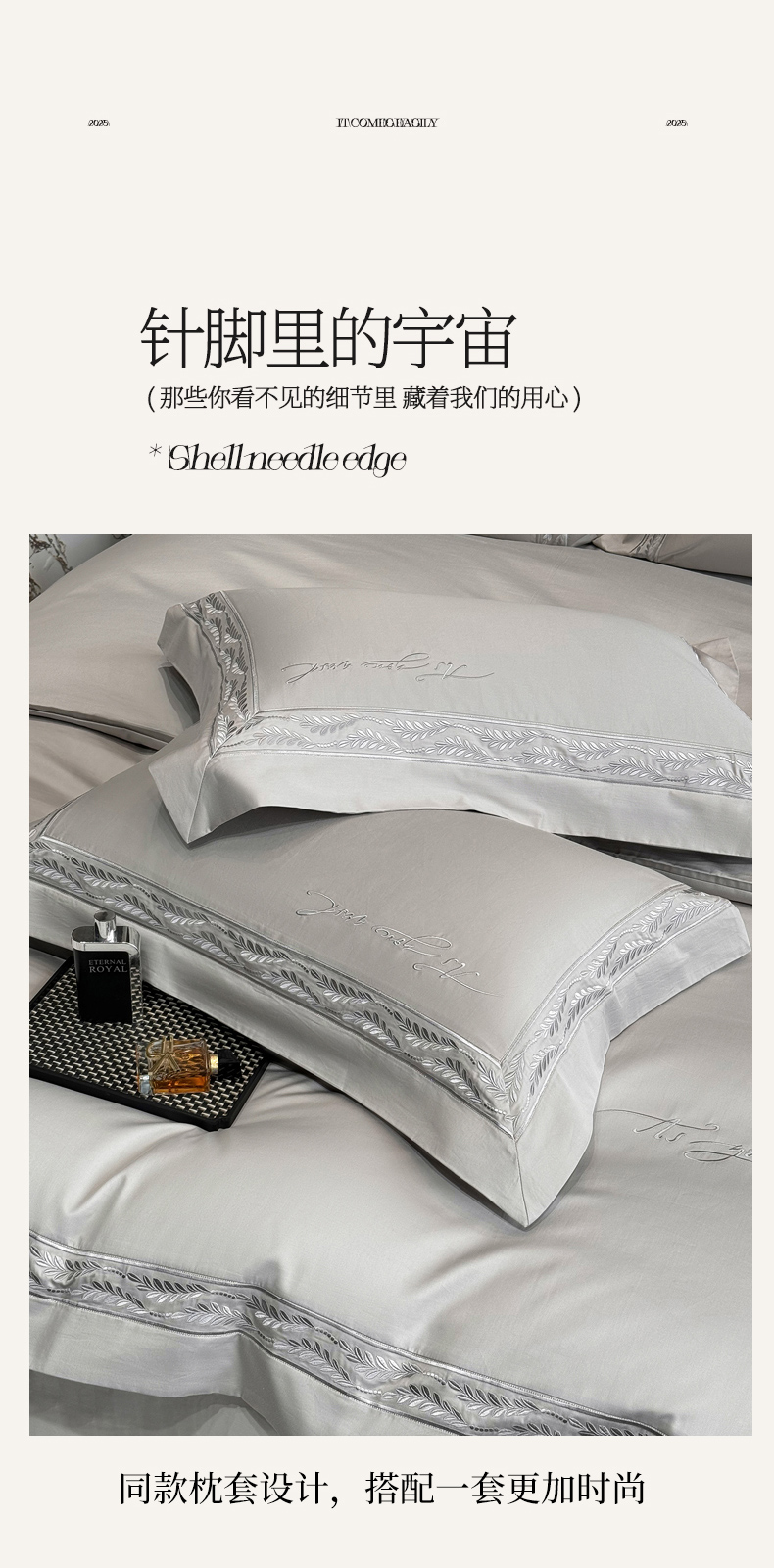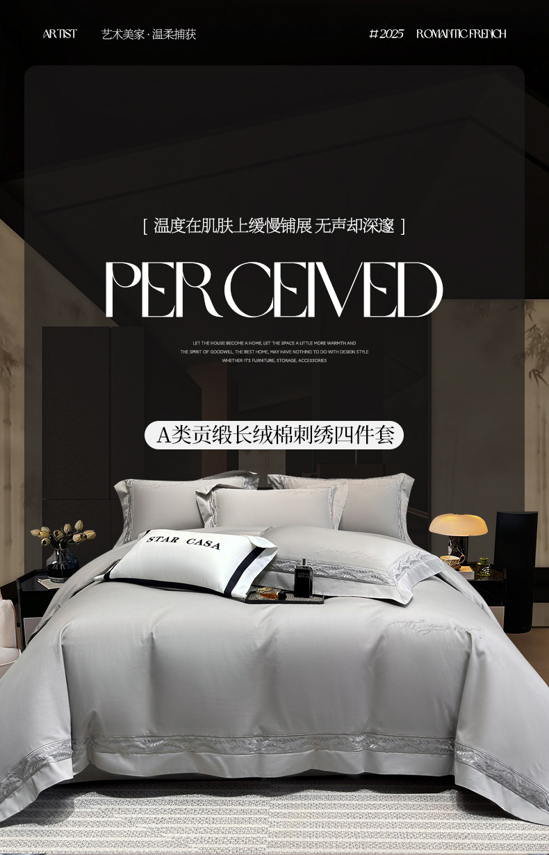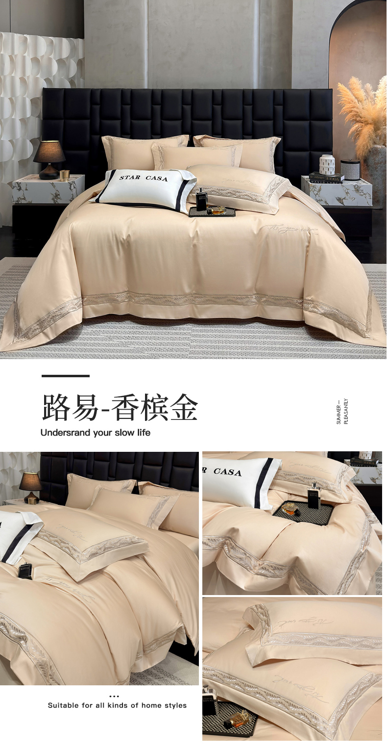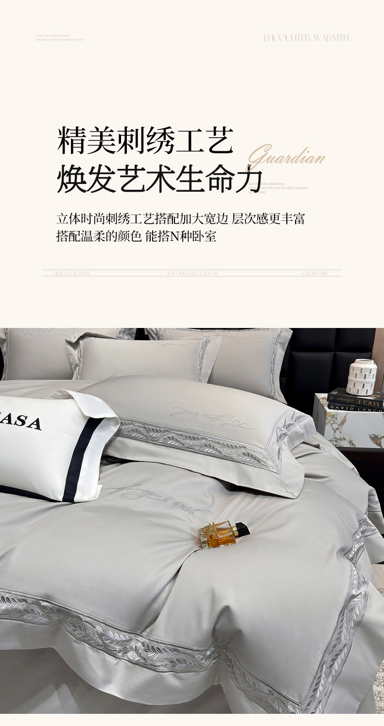 (总)星蕴家纺 2026新款A类新疆全棉刺绣四件套-千禧,高级灰,千禧粉,奶昔白,浅香槟