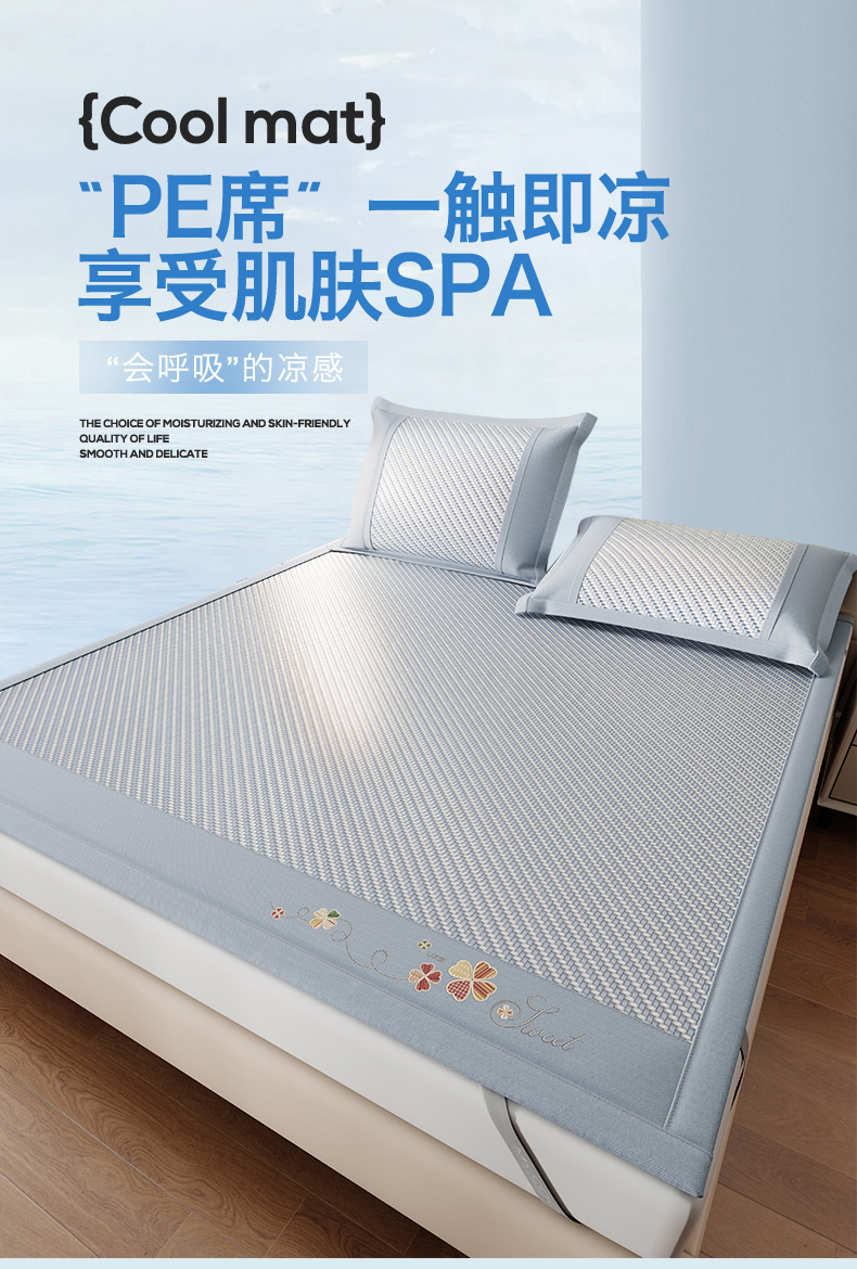 商品名称:乐家欣 2026夏季高端凉席竹席新款pe藤席a类母婴级1.8m空调软席子可水洗-四叶花语 四叶花语-兰