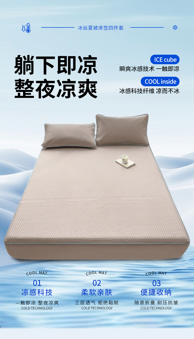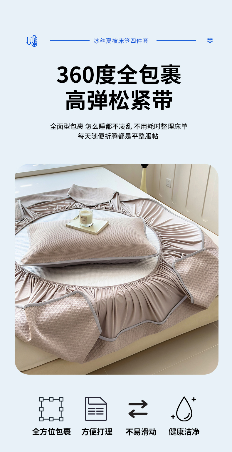 当前位置: 91家纺网 > 商品网购 > 床上用品 > 凉席 > 其他凉席 > 乐家欣 2026新款凉感冰丝床席床笠四件套 冰丝床笠款-浅灰
