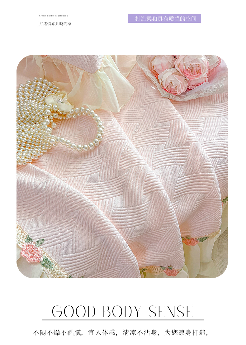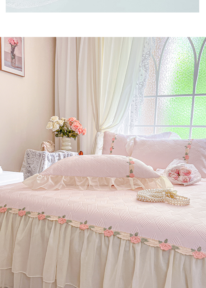 (总)瑞宝2025新款PE凉感花边床裙款凉席夏被四件套-夏日玫瑰,夏日玫瑰-抹茶绿,夏日玫瑰-奶油白,夏日玫瑰-少女粉