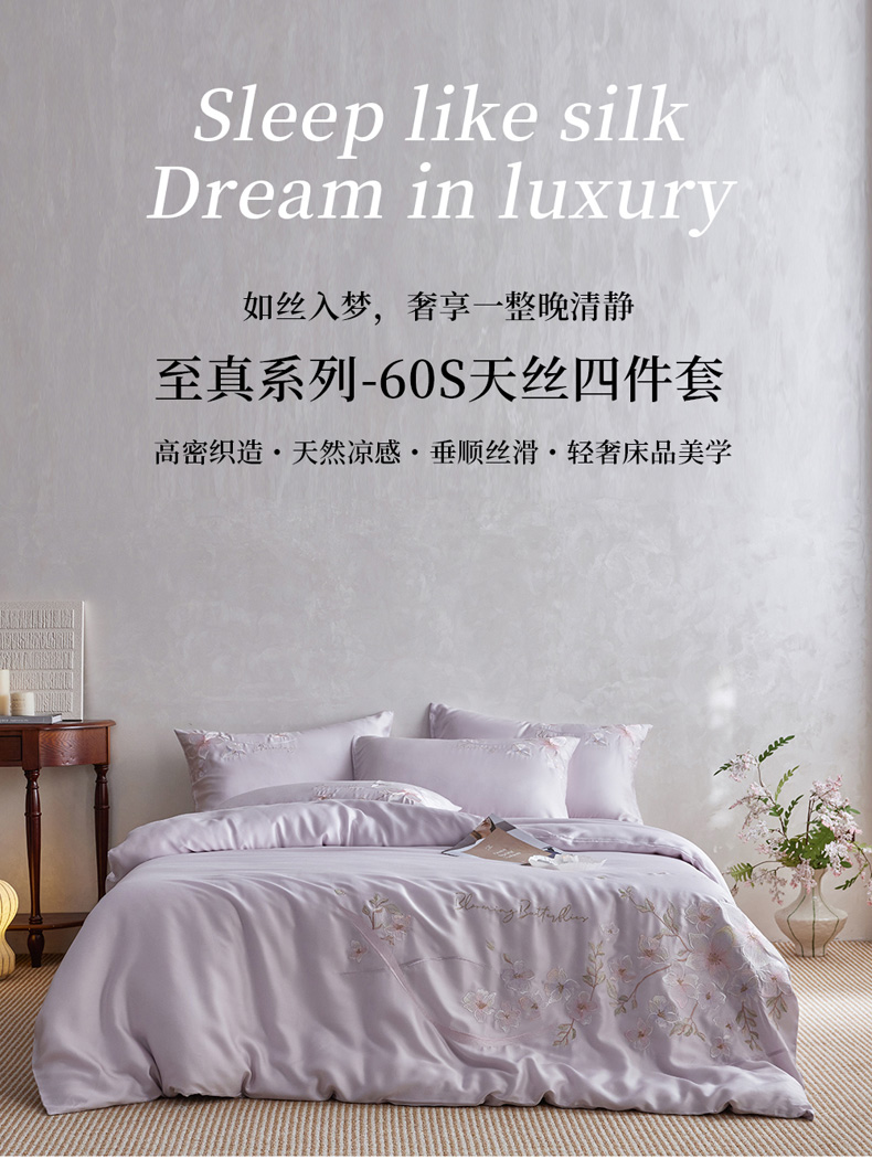 当前位置: 91家纺网 > 商品网购 > 床品套件 > 四件套 > 莱赛尔四件套 > 爱缦 2026新款60支兰精天丝四件套--至真系列 浅紫