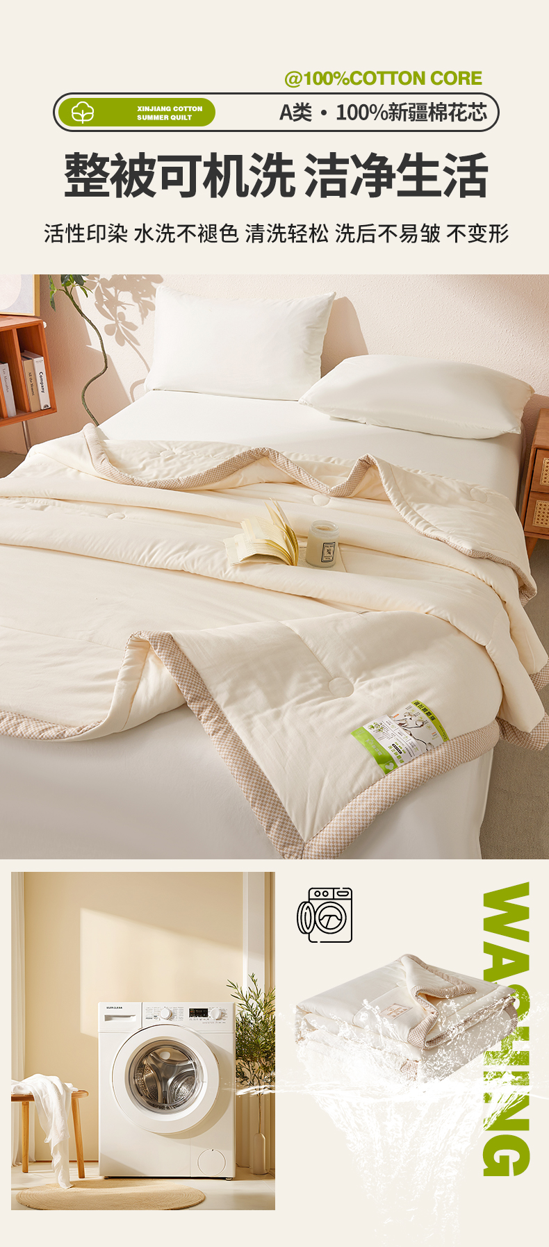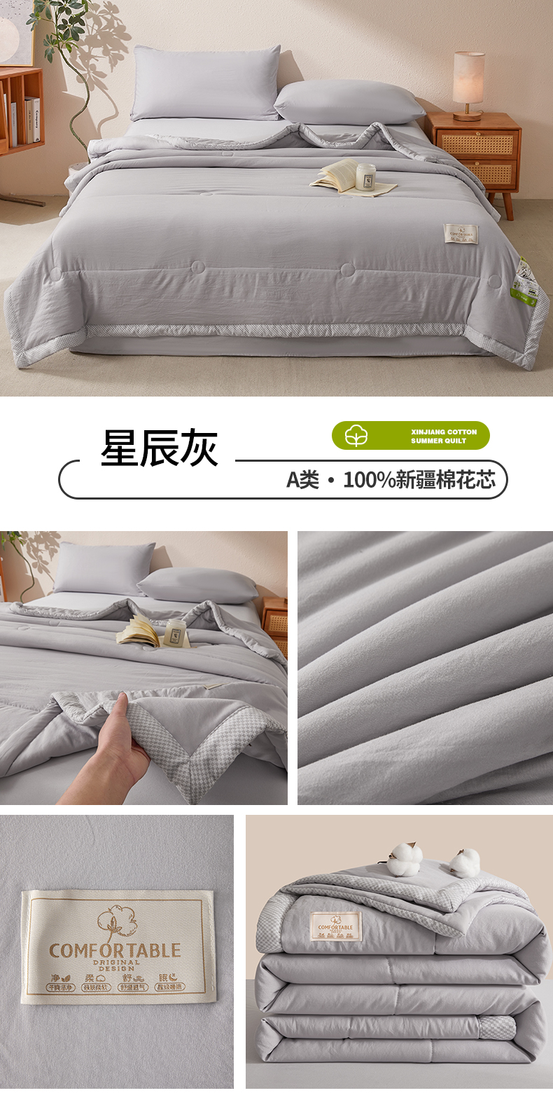 (总)罗布斯 2025升级A类水洗棉立体拼边大豆纤维被二合一子母被学生宿舍被子被芯夏被空调被春秋被直播冬被含买家秀,泡芙白,静夜灰,温柔玉