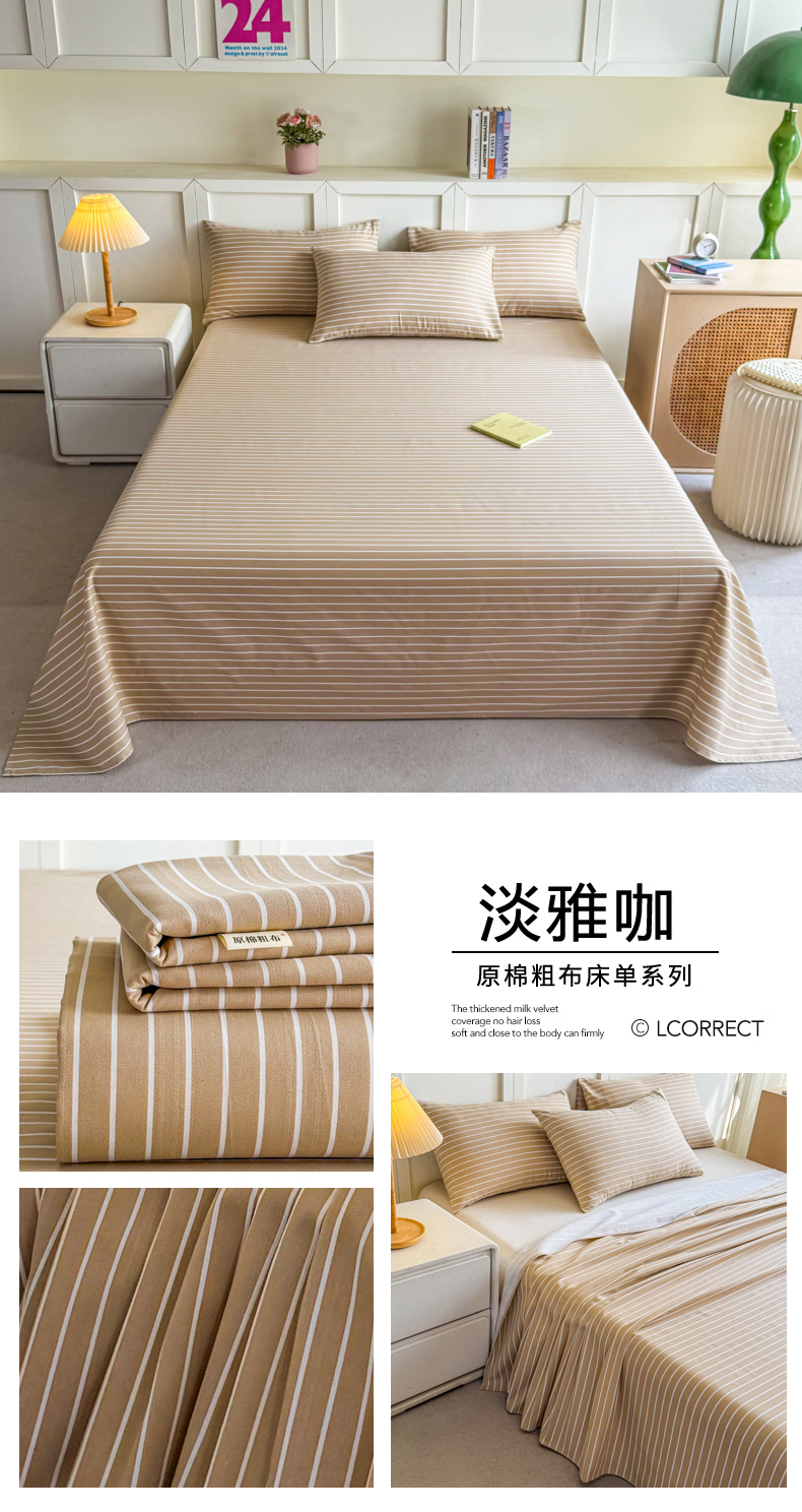 当前位置: 91家纺网 > 商品网购 > 床品套件 > 三件套 > 晨晨家纺 2026新款原棉老粗布床单席子凉席三件套 淡雅咖