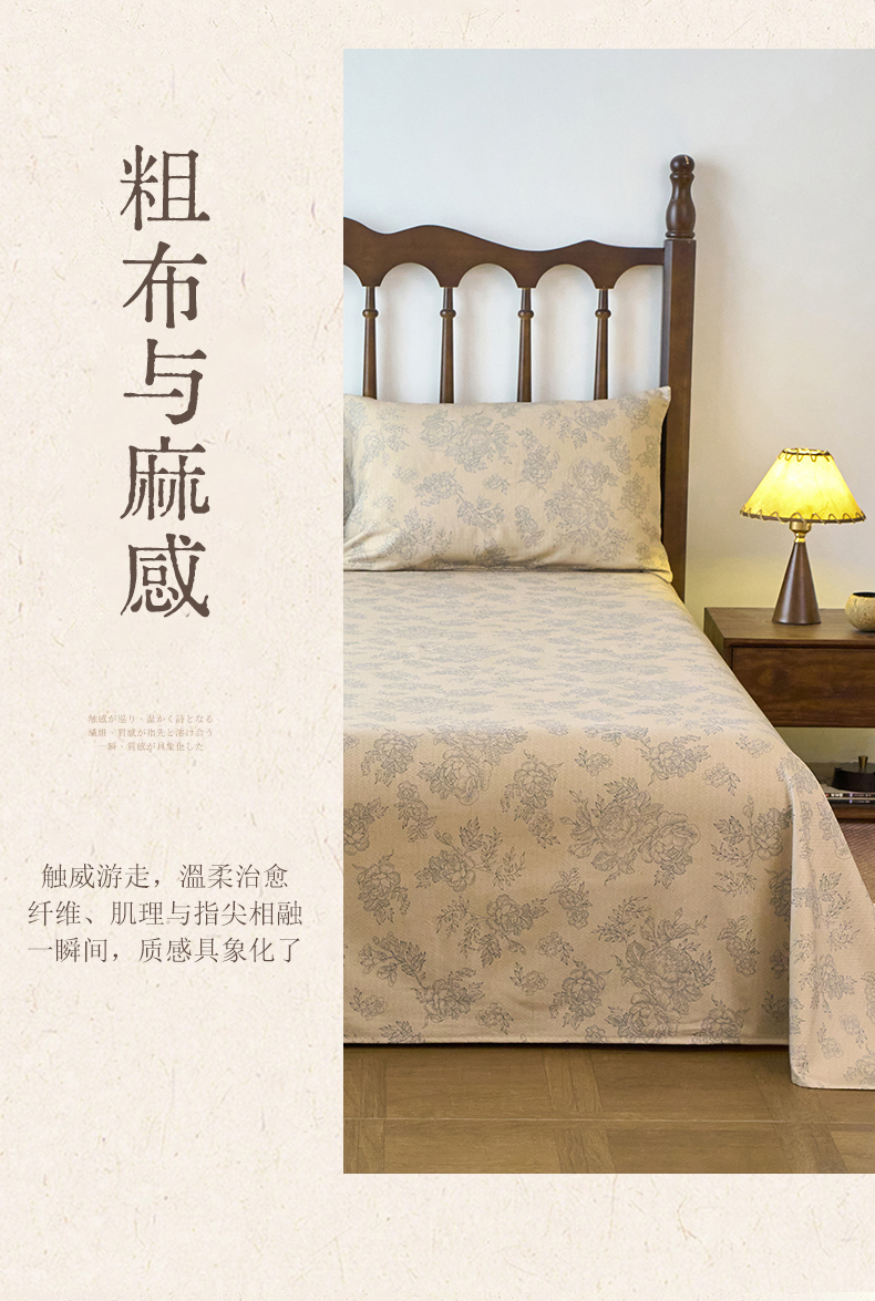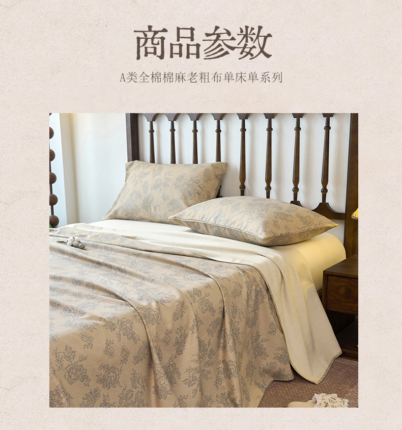 (总)春皖家纺 2026春夏新款棉麻老粗布系列床单空调软席凉席席子,丹青,蝶影,琉璃,墨香,浅蔓,柔结,雾花,樱落