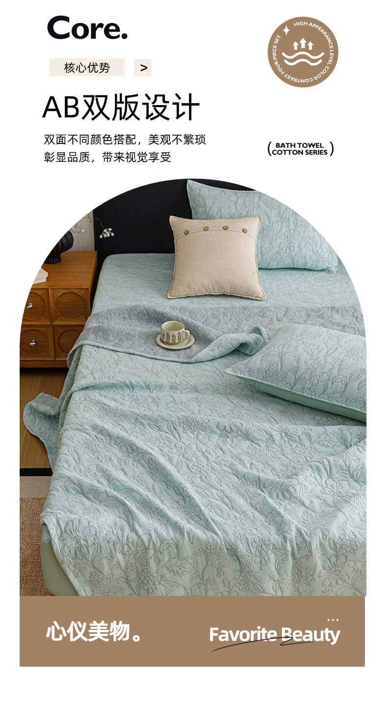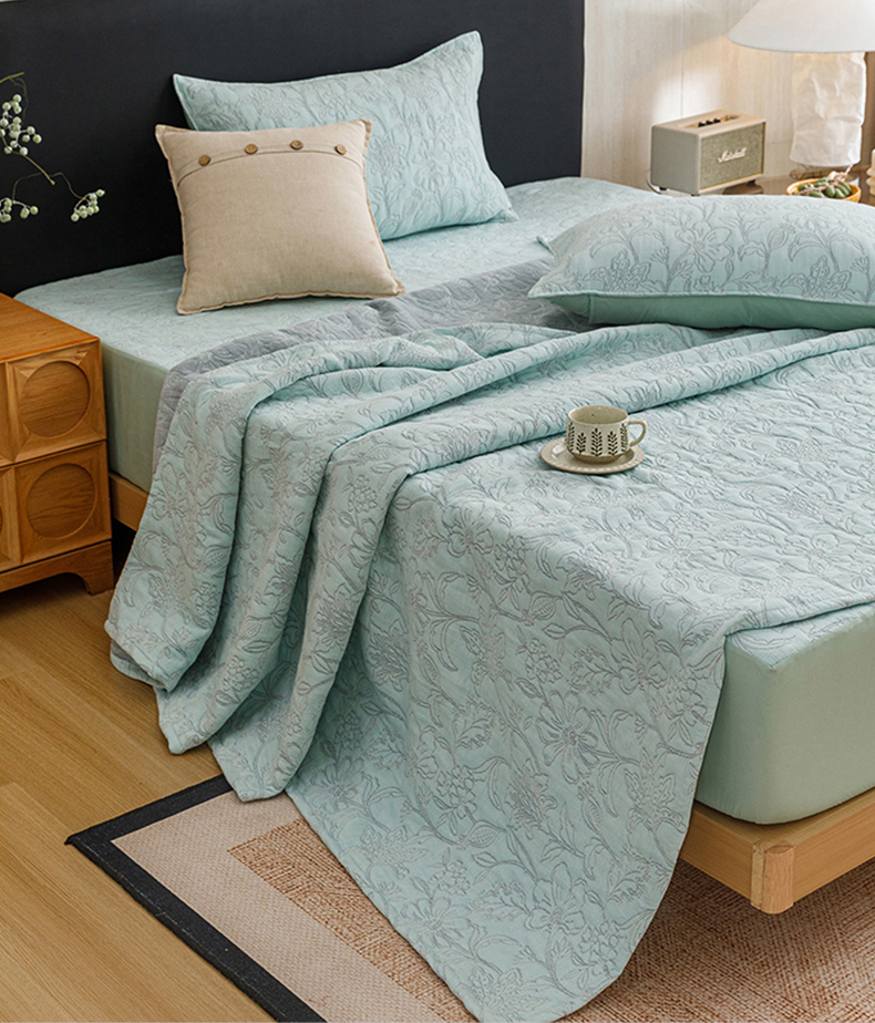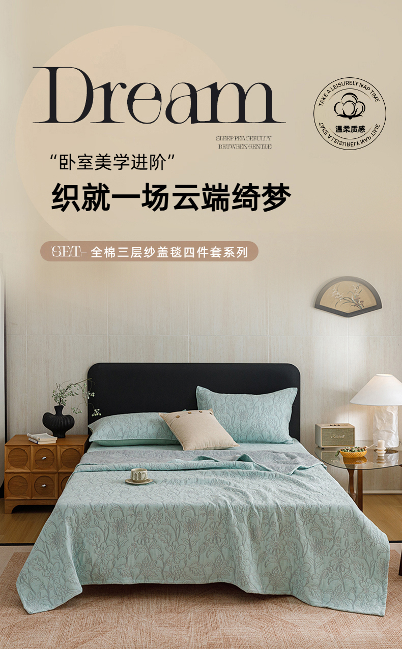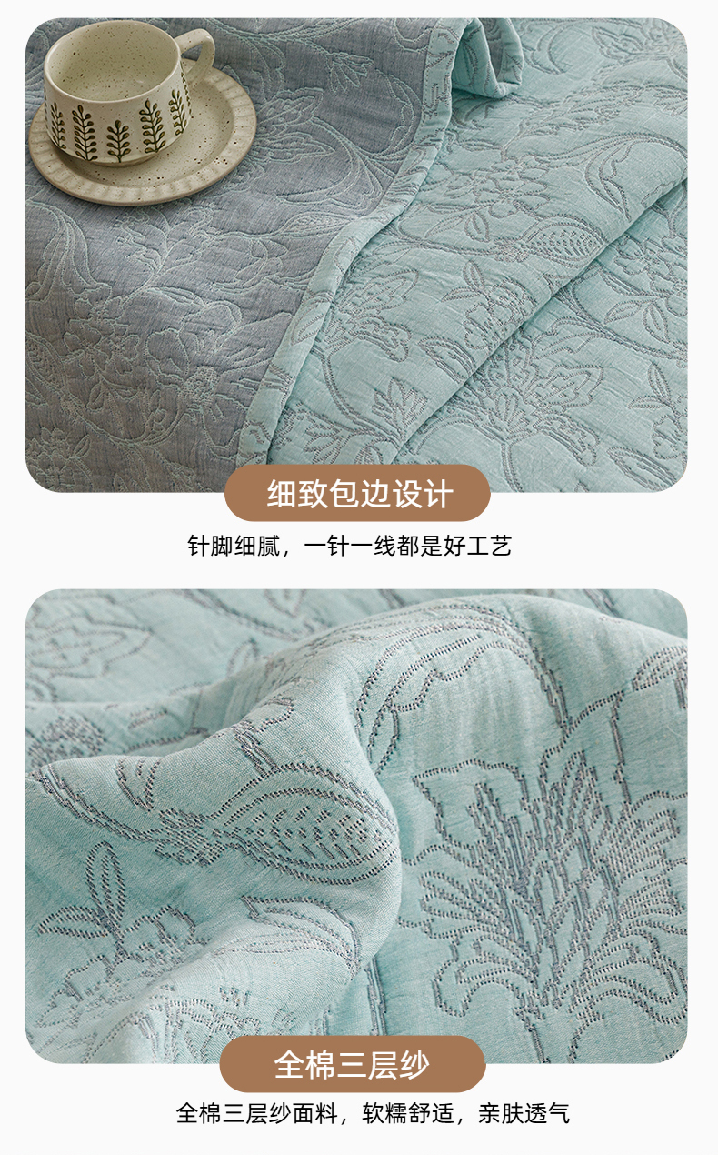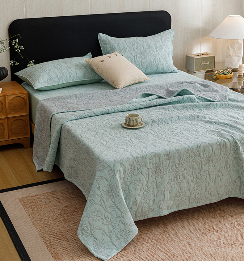 当前位置: 91家纺网 > 商品网购 > 床品套件 > 四件套 > 夏被四件套 > 悦然毛巾被 2026新款全棉三层纱加厚夏被四件套毛巾床笠盖毯毛毯枕套夏凉被空调被 花织流年蓝