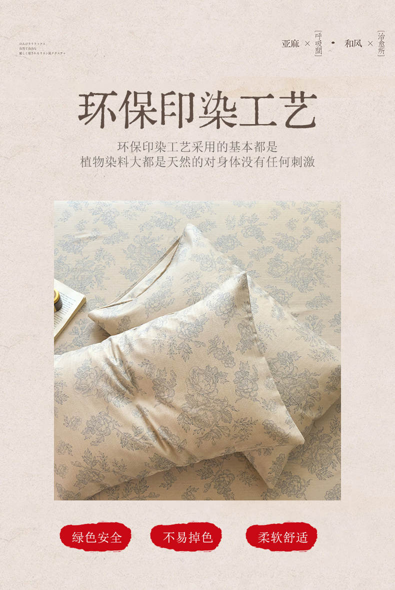 (总)春皖家纺 2026春夏新款棉麻老粗布系列单枕套 枕套单件,丹青,蝶影,琉璃,墨香,浅蔓,柔结,雾花,樱落