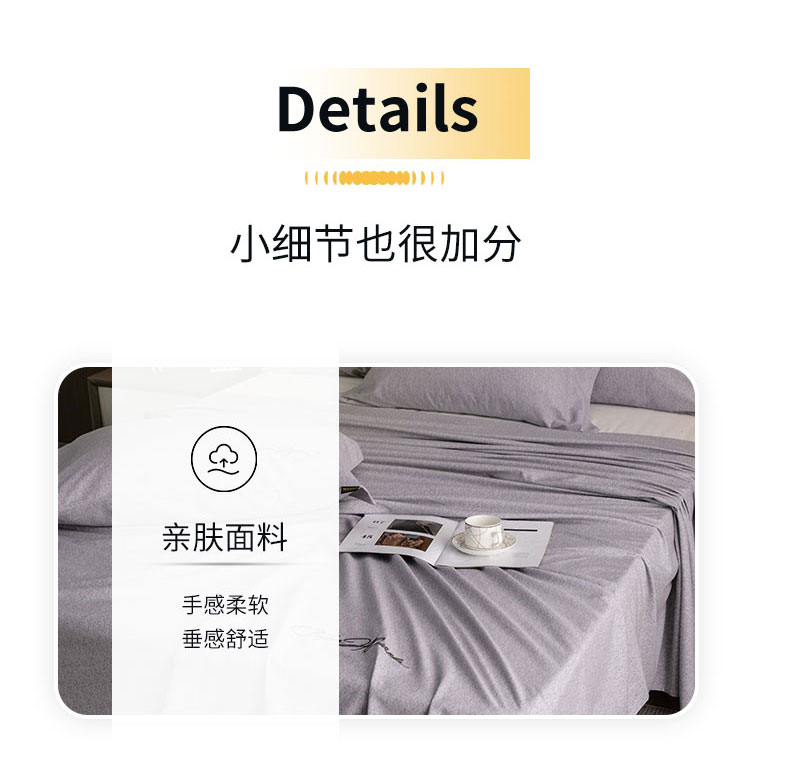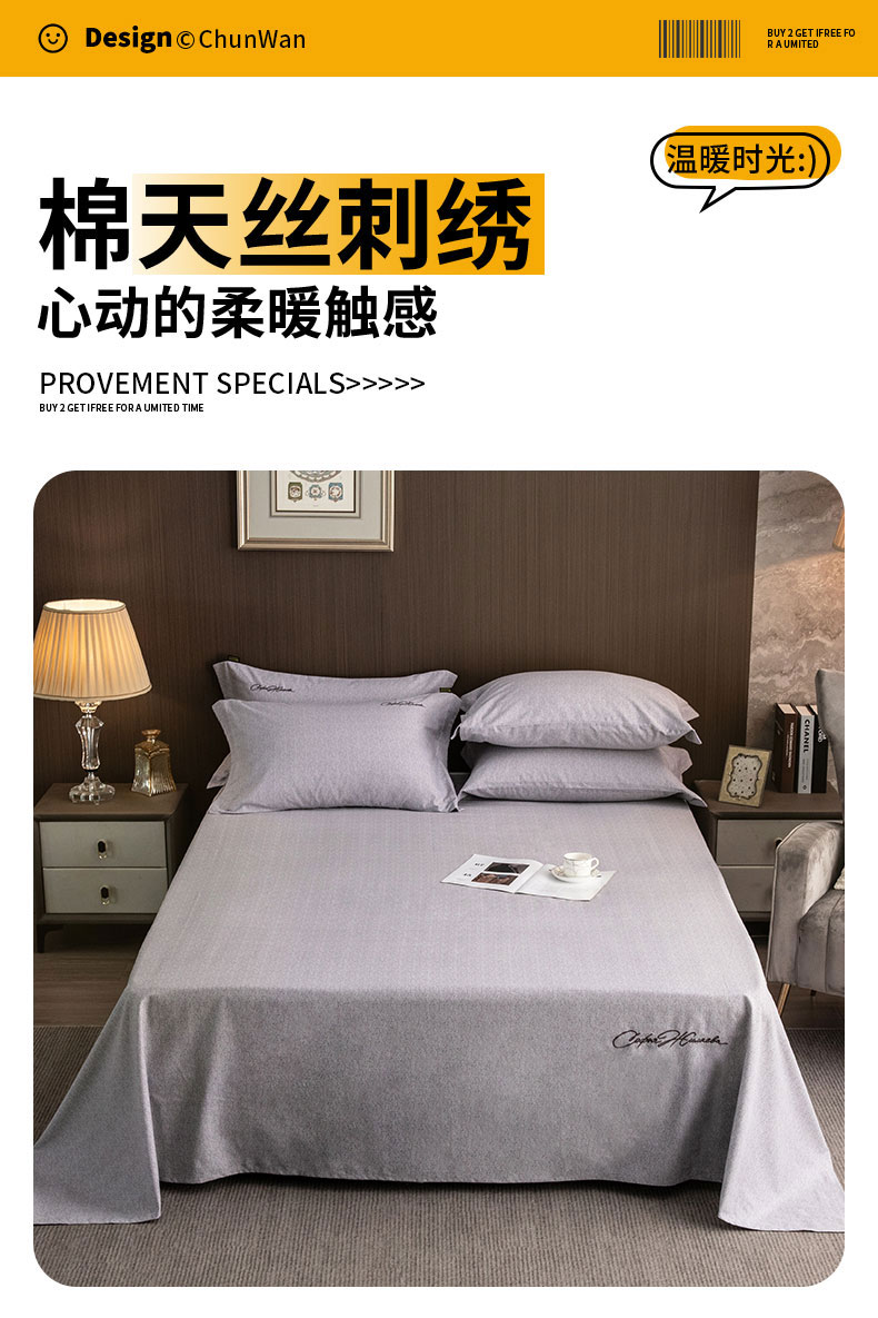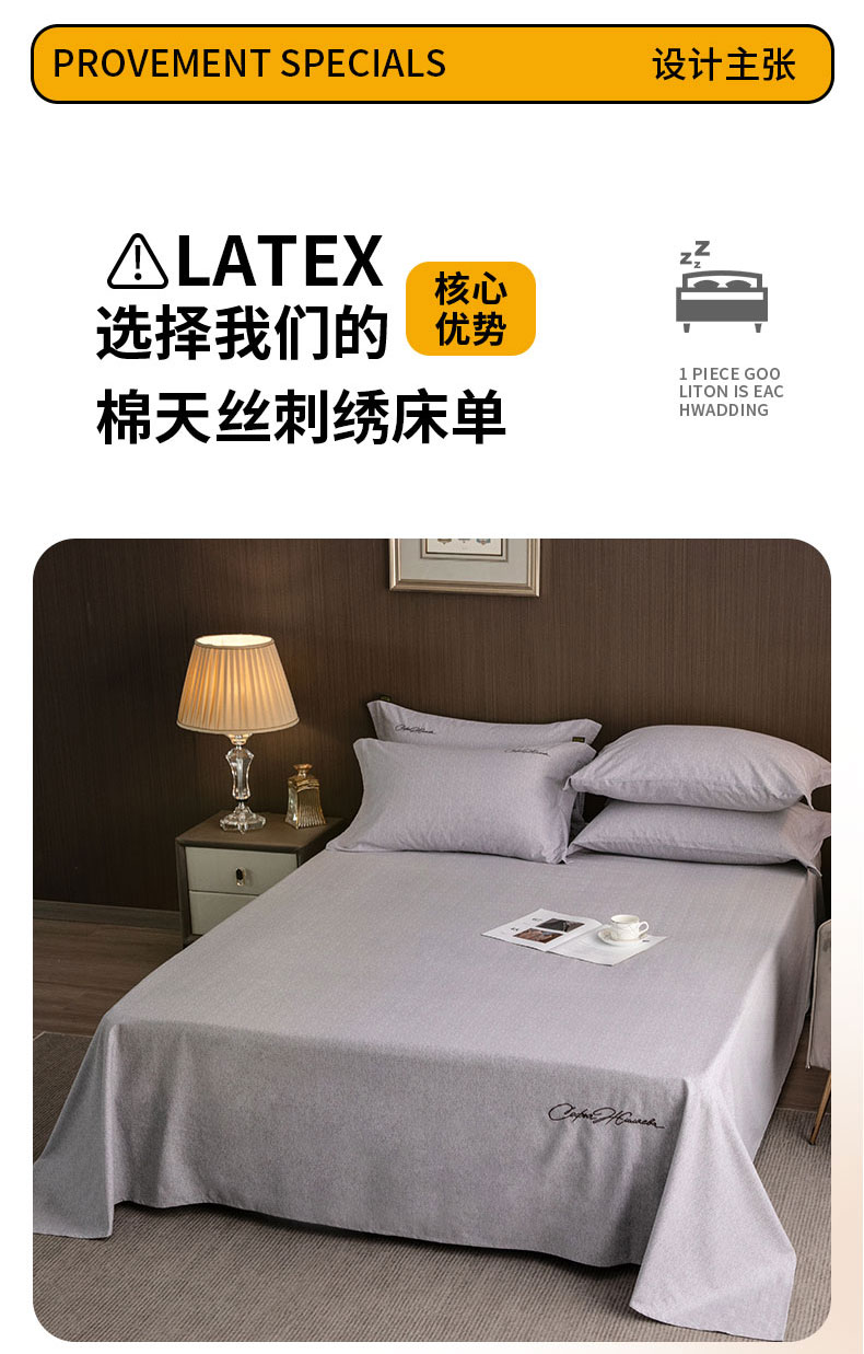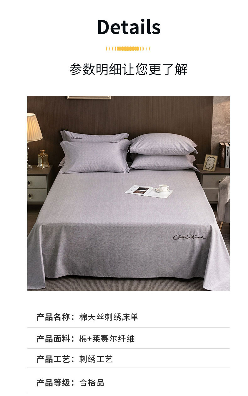 商品名称:春皖家纺 2026春夏新款天丝棉刺绣单床单 床单单件 钛绮灰