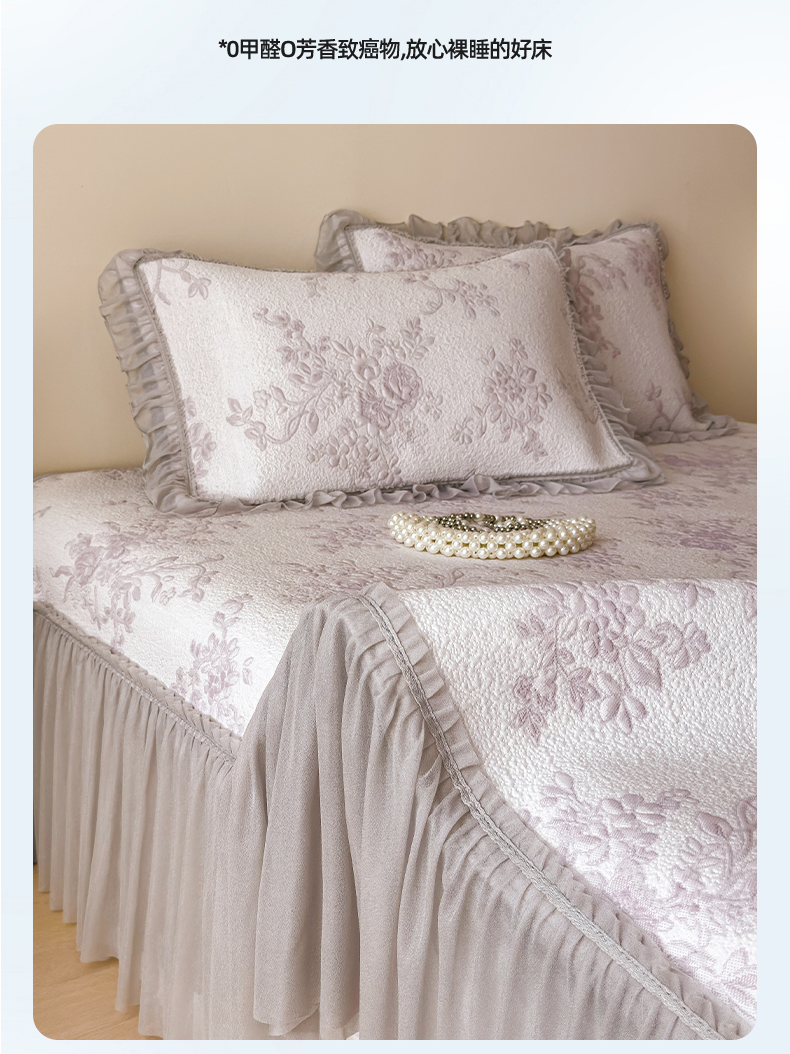 (总)莱家富 2026新款A类母婴级法式风冰豆豆凉席夏天冰丝席夏季可机洗家用软席床裙款,思琳娜-淡雅紫,思琳娜-冰粉,思琳娜-淡黄,思琳娜-淡蓝,思琳娜-豆咖,思琳娜-豆绿,思琳娜-天空蓝
