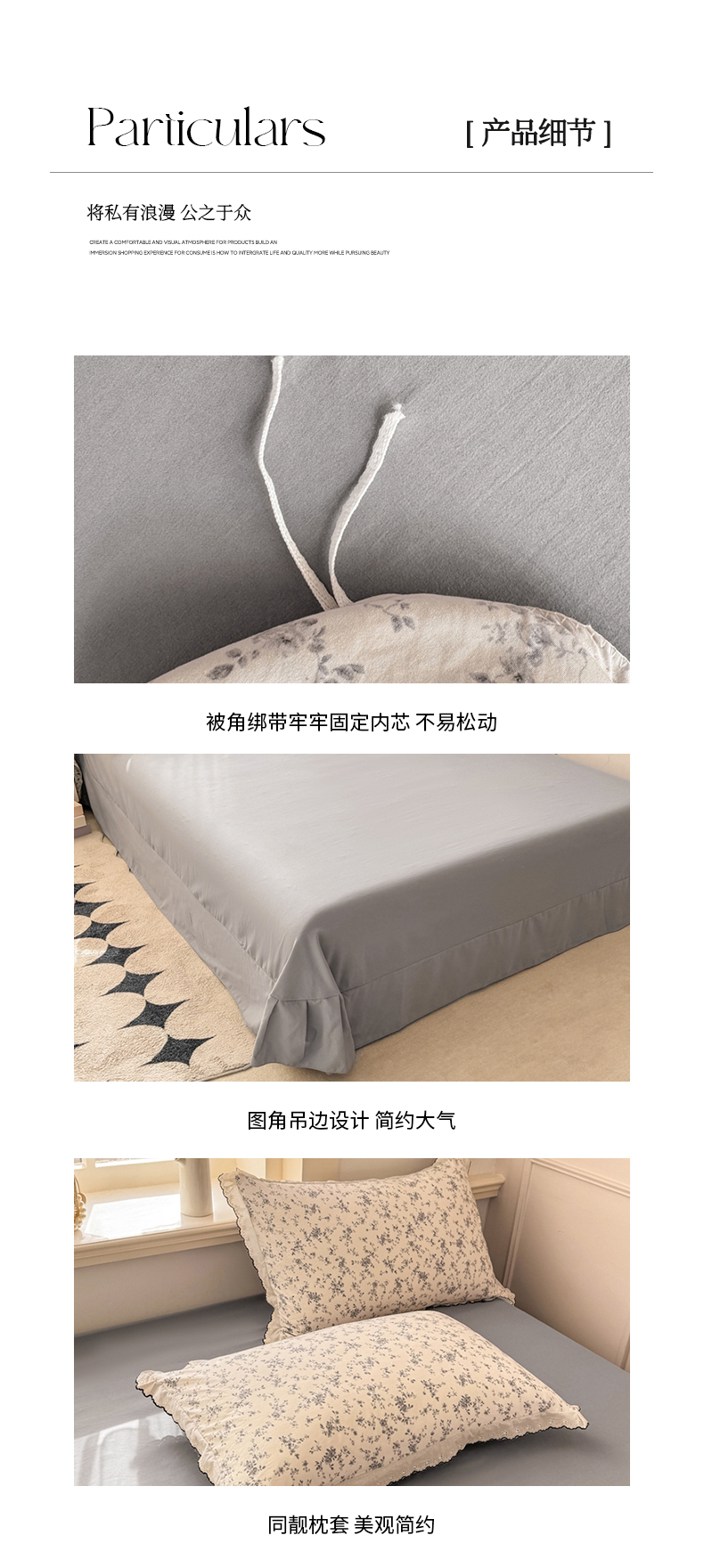 梦忧草 2026新款春夏新款法式花边小清新四件套仿棉云感纱三件套单被套单件 梦幻灰,梦幻灰