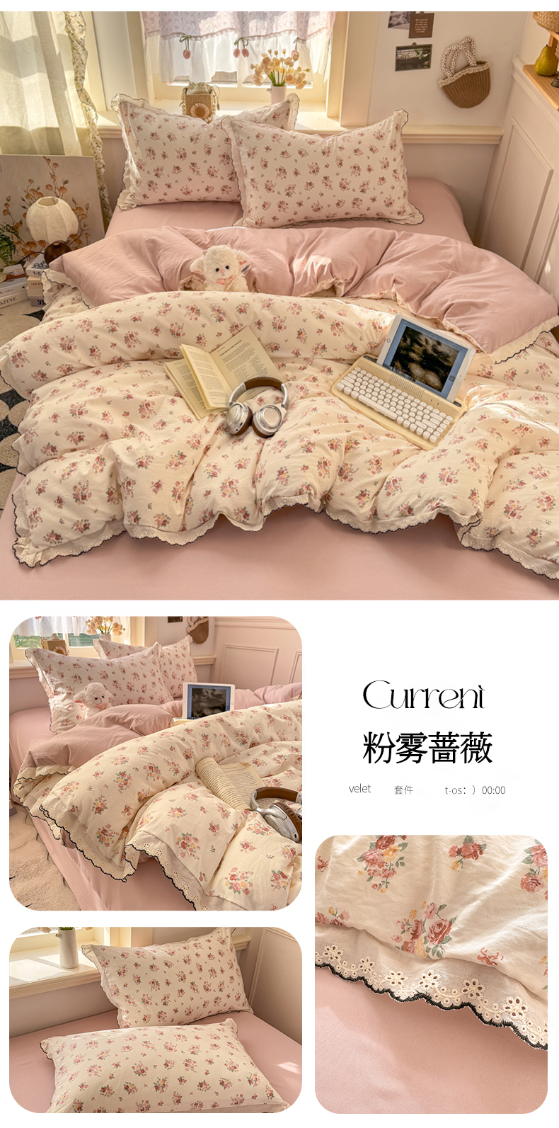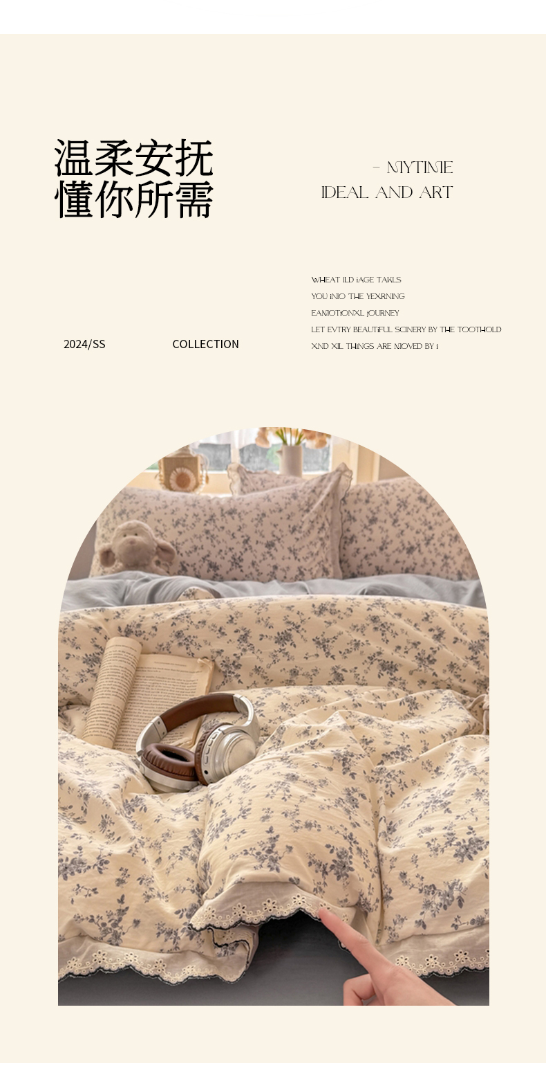 商品名称:(总)梦忧草 2026新款春夏新款法式花边小清新四件套仿棉云感纱三件套单被套单件