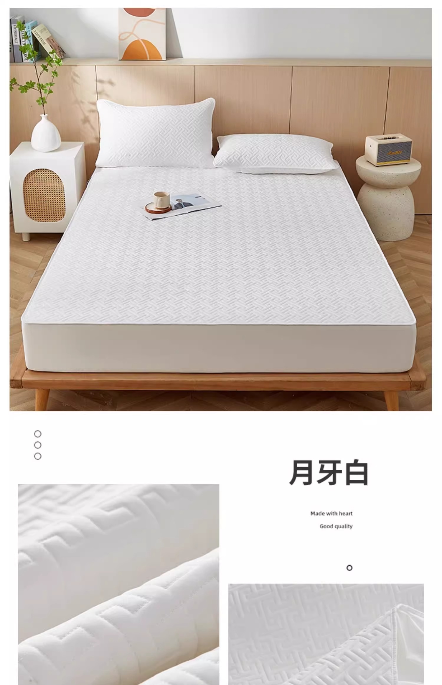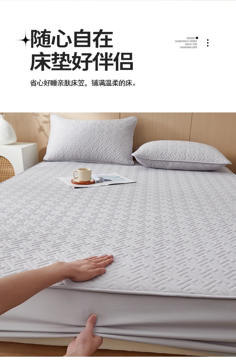 • 91家纺网 家纺一手货源 找家纺 (总)小米枕芯 2026新款全棉纯棉棉花图案舒适夹棉床笠,白色,灰色
