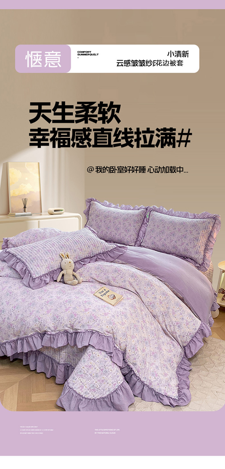 (总)眠势力 2026新款云感皱皱纱床盖四件套,紫雾花汀,缤纷彩结,彩色心情,草莓蝴蝶结,春野织梦,哈喽猫咪,海盐奶猫,花漾草莓,金蝶逐影,萌兔乐园,青樱兔语,向云端,星梦甜心,幸运小马,紫芋南瓜