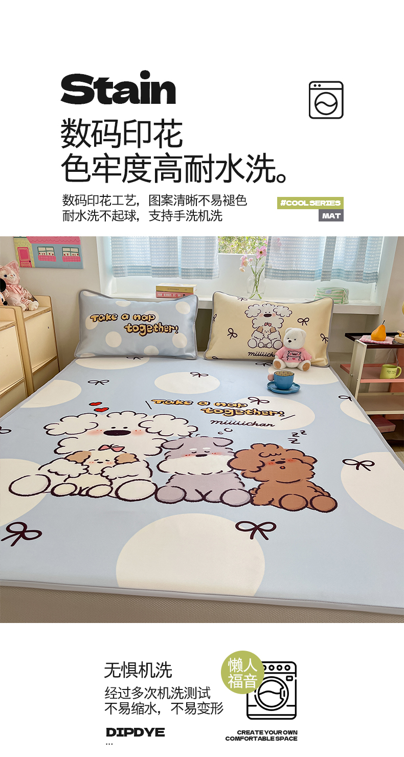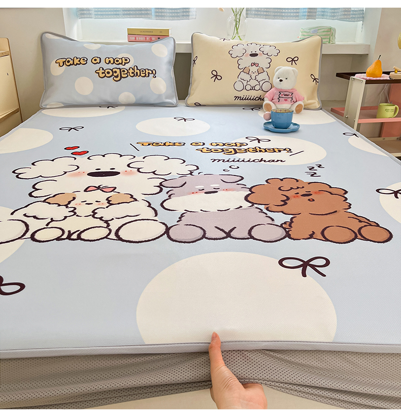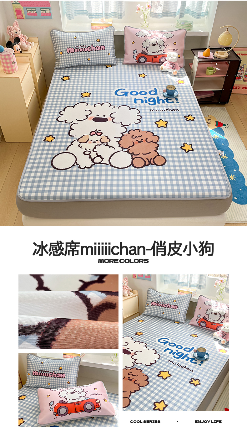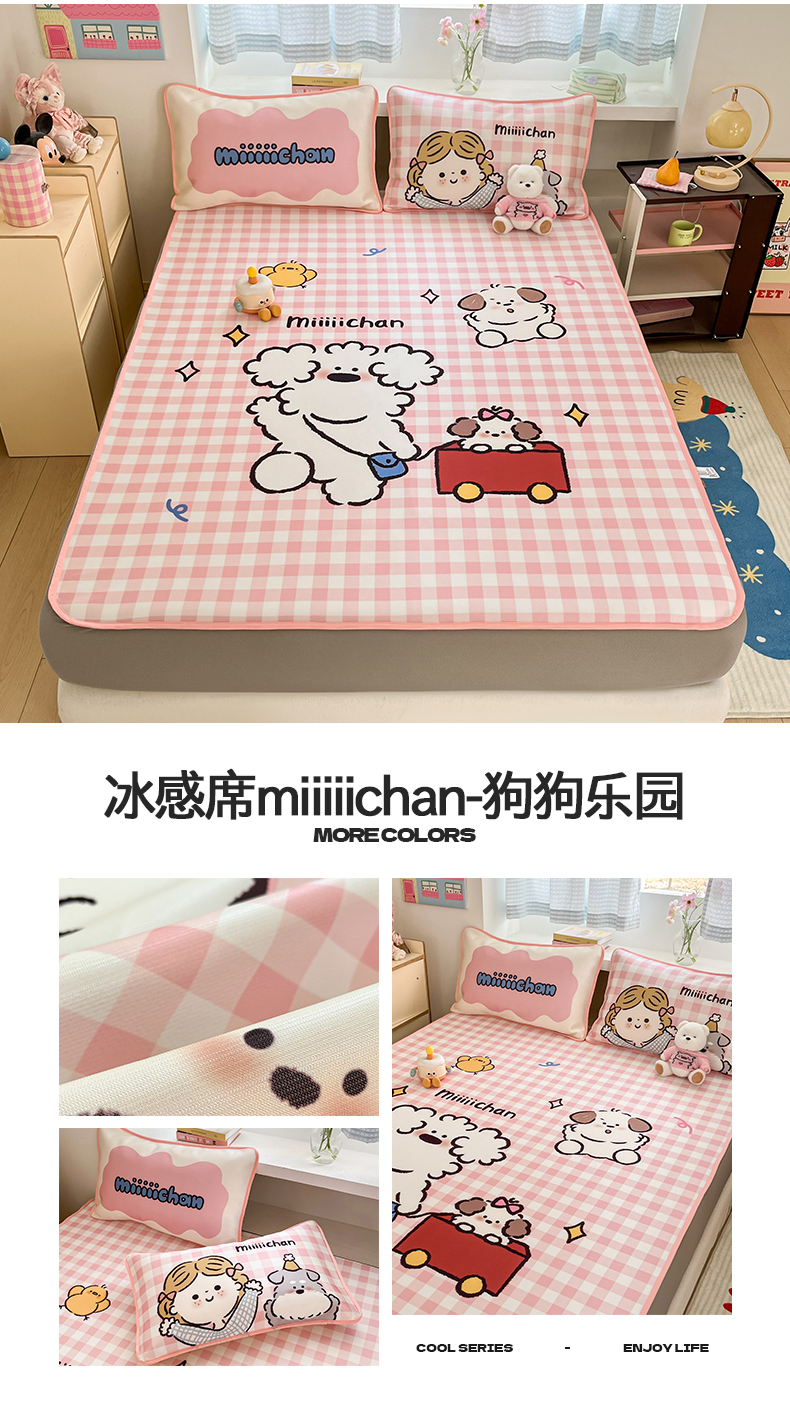 商品名称:(总)桃子家居 2026新款正版授权miiiiichan大版数码印花1200D凉席三件套平铺床笠