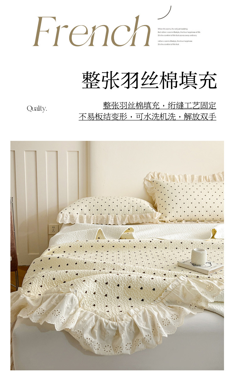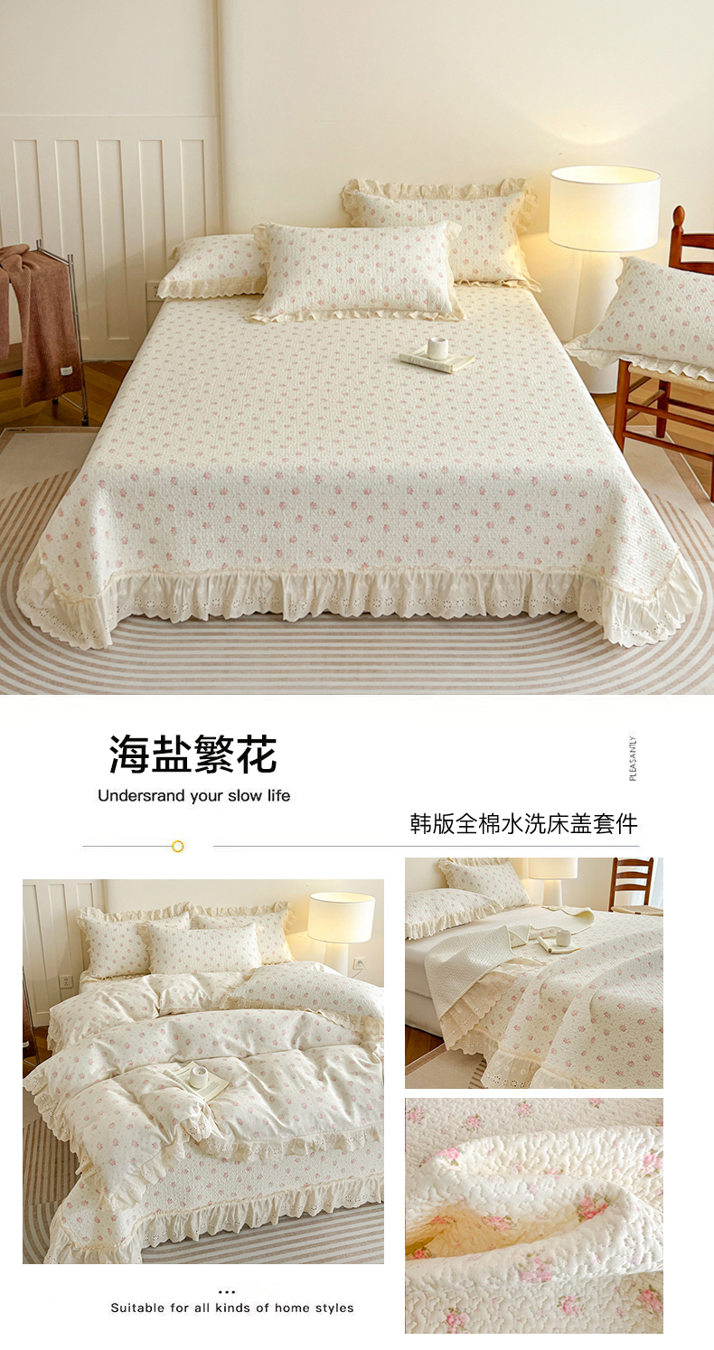 当前位置: 91家纺网 > 商品网购 > 床品套件 > 四件套 > 全棉普通四件套 > 羽爱家纺 2026新款全棉水洗韩版花边床盖四件套 心印柔