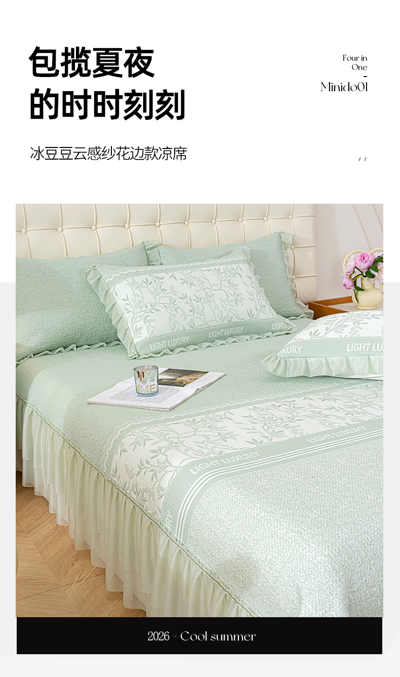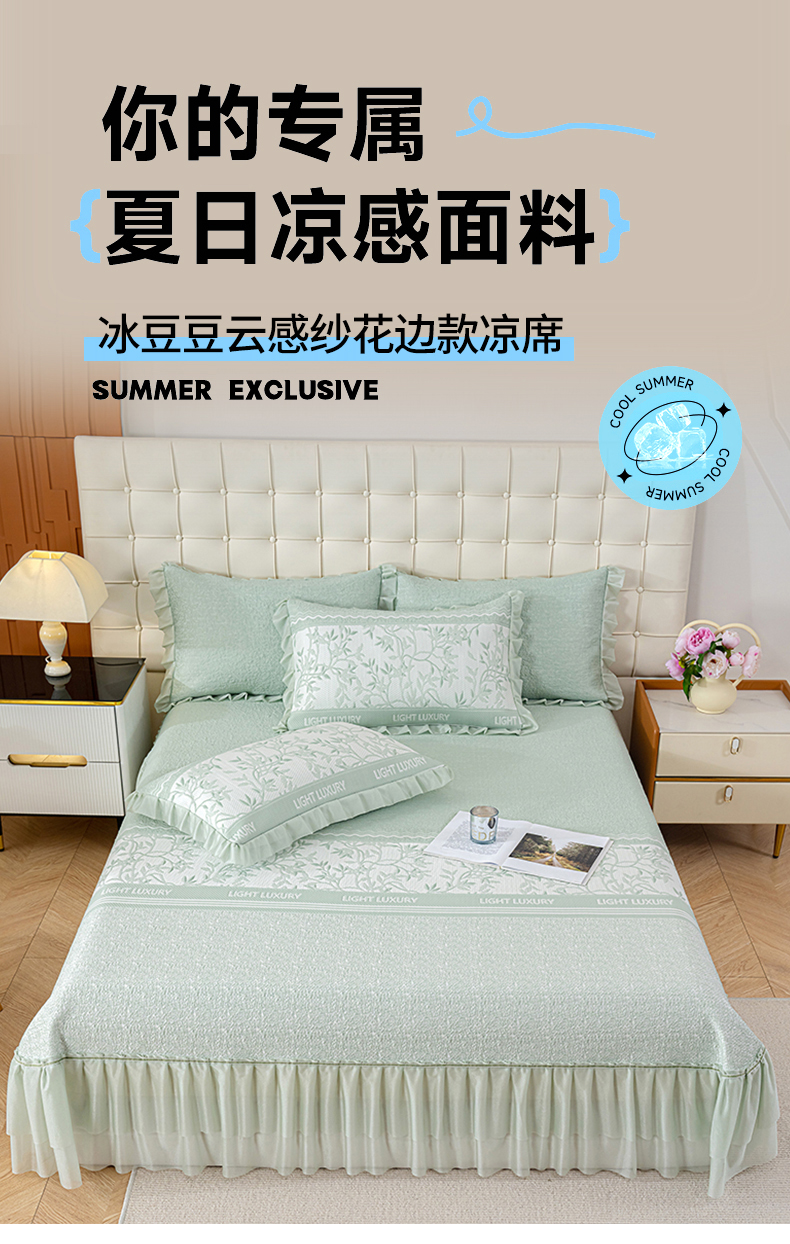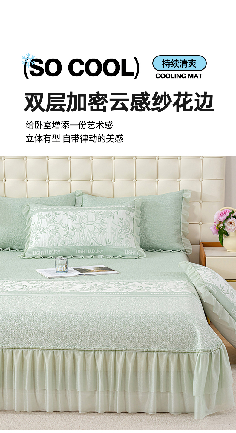 当前位置: 91家纺网 > 商品网购 > 床上用品 > 凉席 > 其他凉席 > 冬然家纺 2026新款【清凉一夏系列】冰豆豆凉席床裙款 清凉一夏-绿