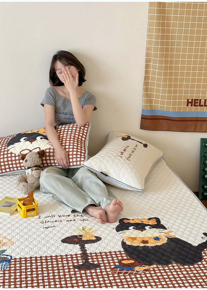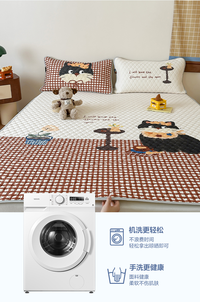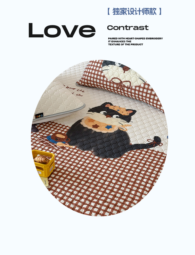 (总)RYB红黄兰 2026新款ins设计师原创款大版冰皮凉感水洗乳胶加厚6mm凉席三件套,萝莉心心,爆米花先生,彩色喵星人,蓝条哈吉米,小白的毛线,小黑的咖啡,小熊和邦尼,波点熊仔,狗狗日记,红格猫咪,咖啡西高地,马戏团小兔,美式腊肠狗,苹果小黑猫,沙发小狗,泰迪小窝