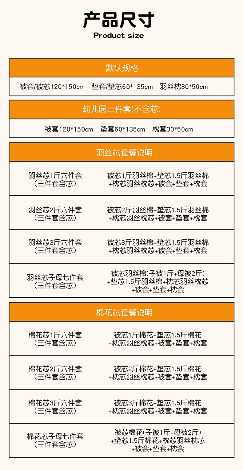 棉花芯子母七件套(三件套含芯) | ¥188.00 |