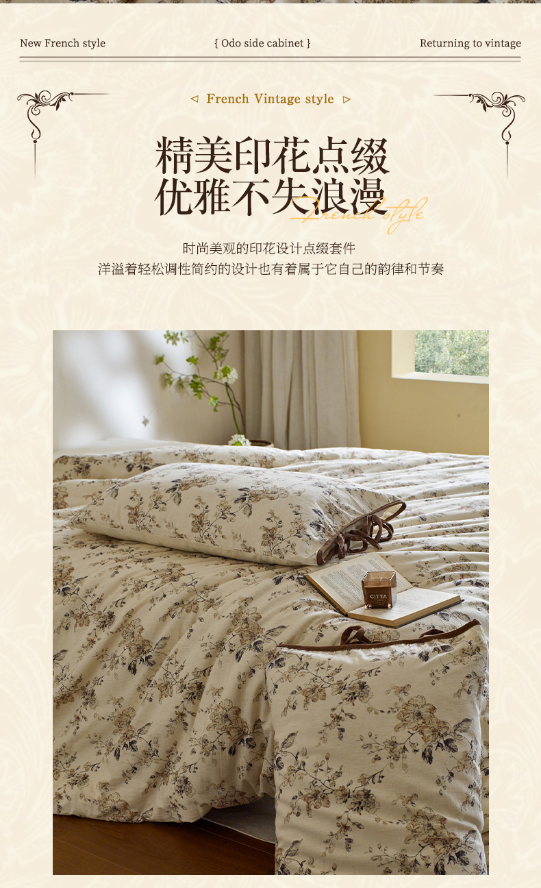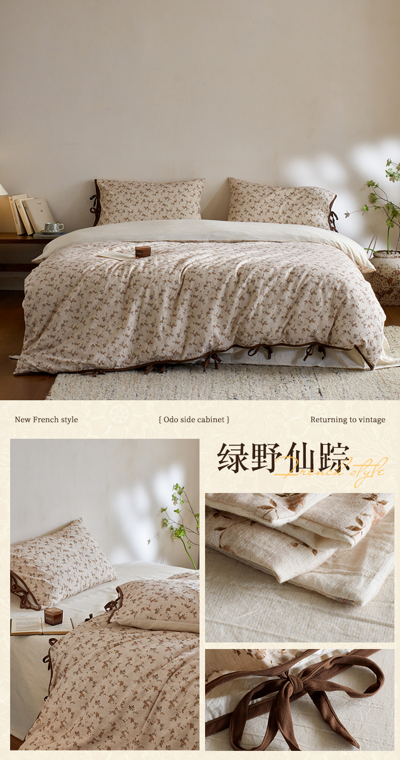 (总)由丽家纺 2026新款法式复古风棉麻绑带款四件套,古韵繁花,春枝红荔,黑绒花,剪影-白,剪影-绿,绿野仙踪,千幻梦,秀丽春色,雅韵锦花