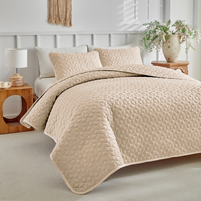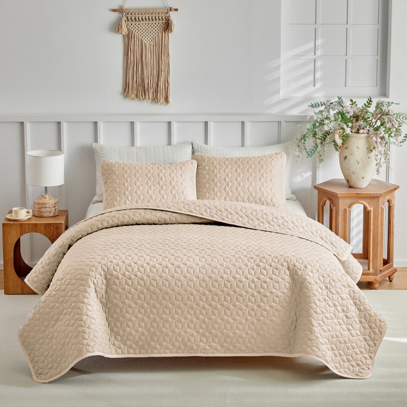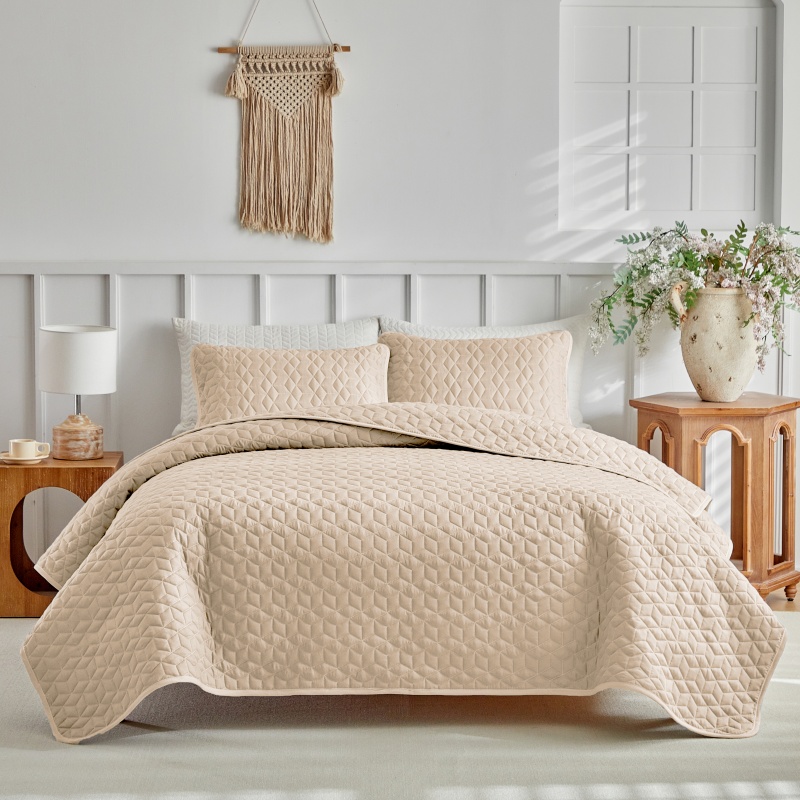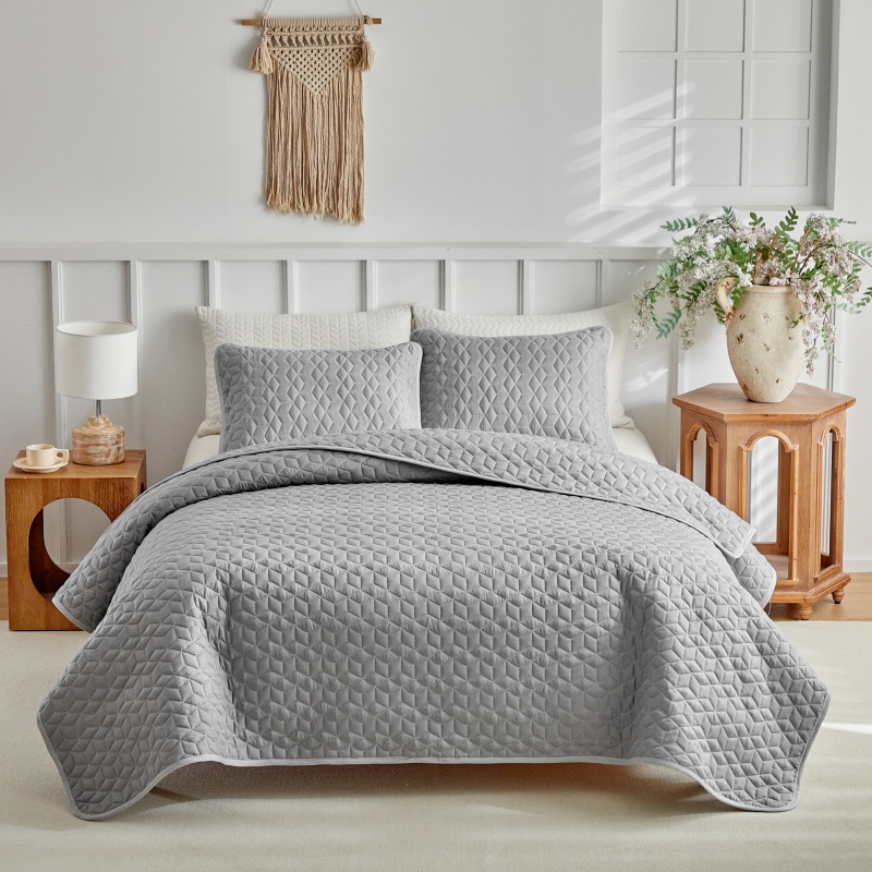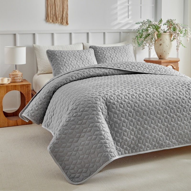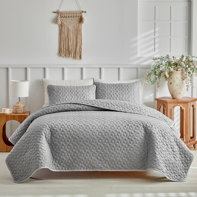 (总)温宁 2026年素色床盖三件套 国外薄被第一批--方糖 跨境,外贸,亚马逊,shein,temu,方糖-灰色,方糖-绿色,方糖-米色
