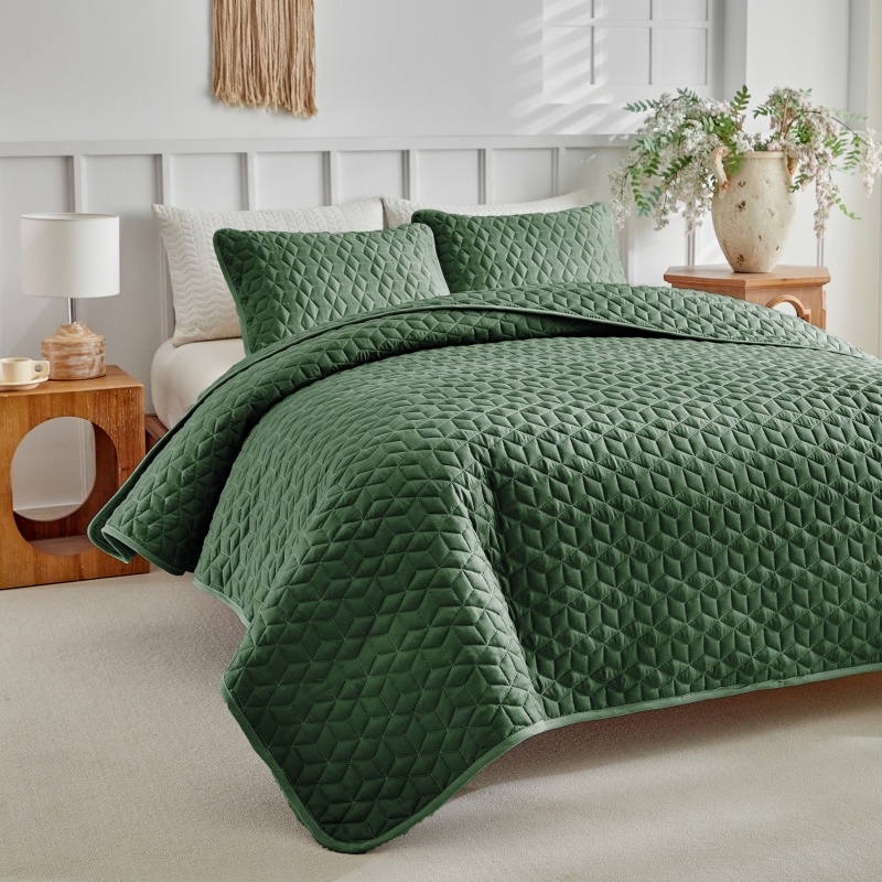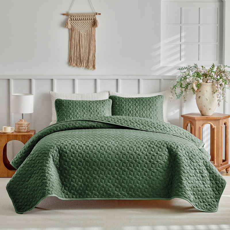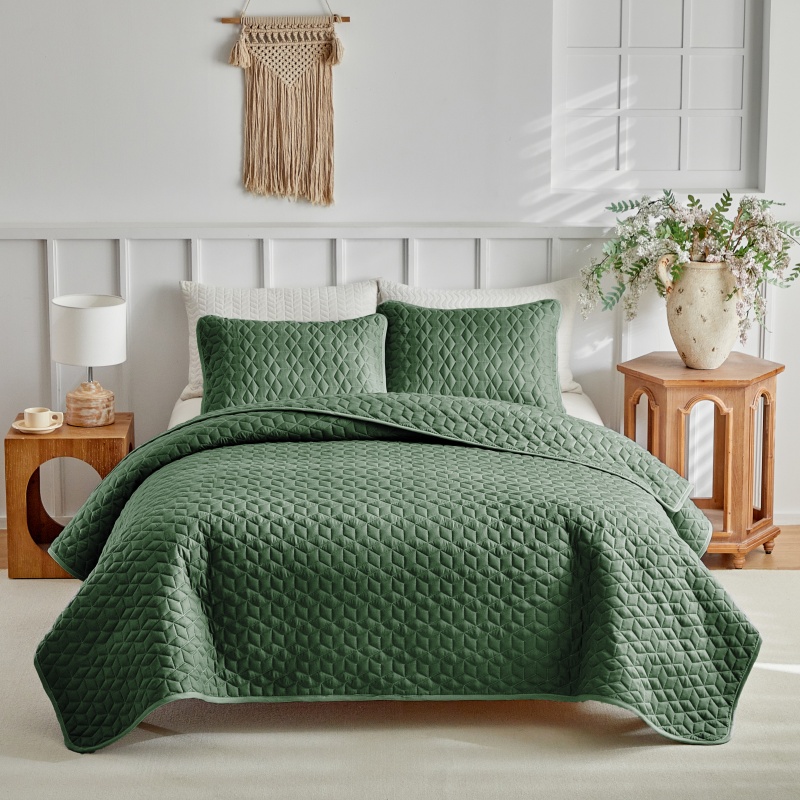 (总)温宁2025新款跨境外贸专供斜方格床盖,绿色,米色,银灰