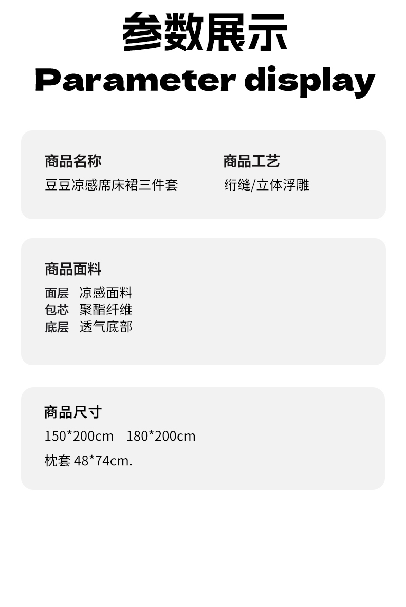 商品名称:绒艺席业 2026年新款立体浮雕工艺正宗凉感豆豆席凉席席子-床裙款 豆豆彩蝶-灰色
