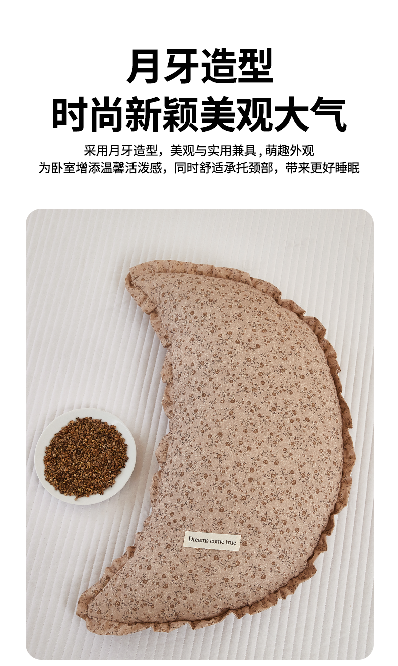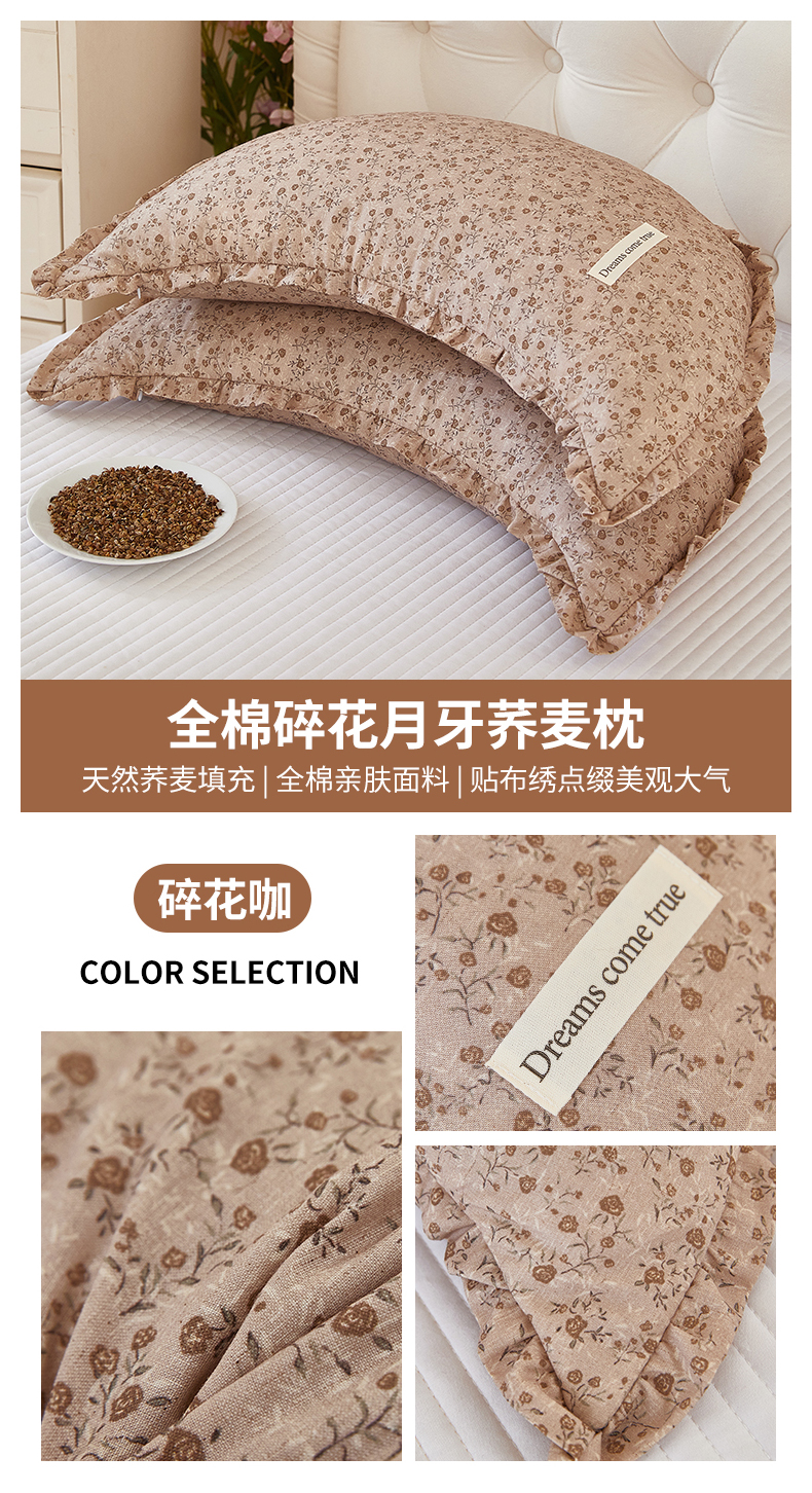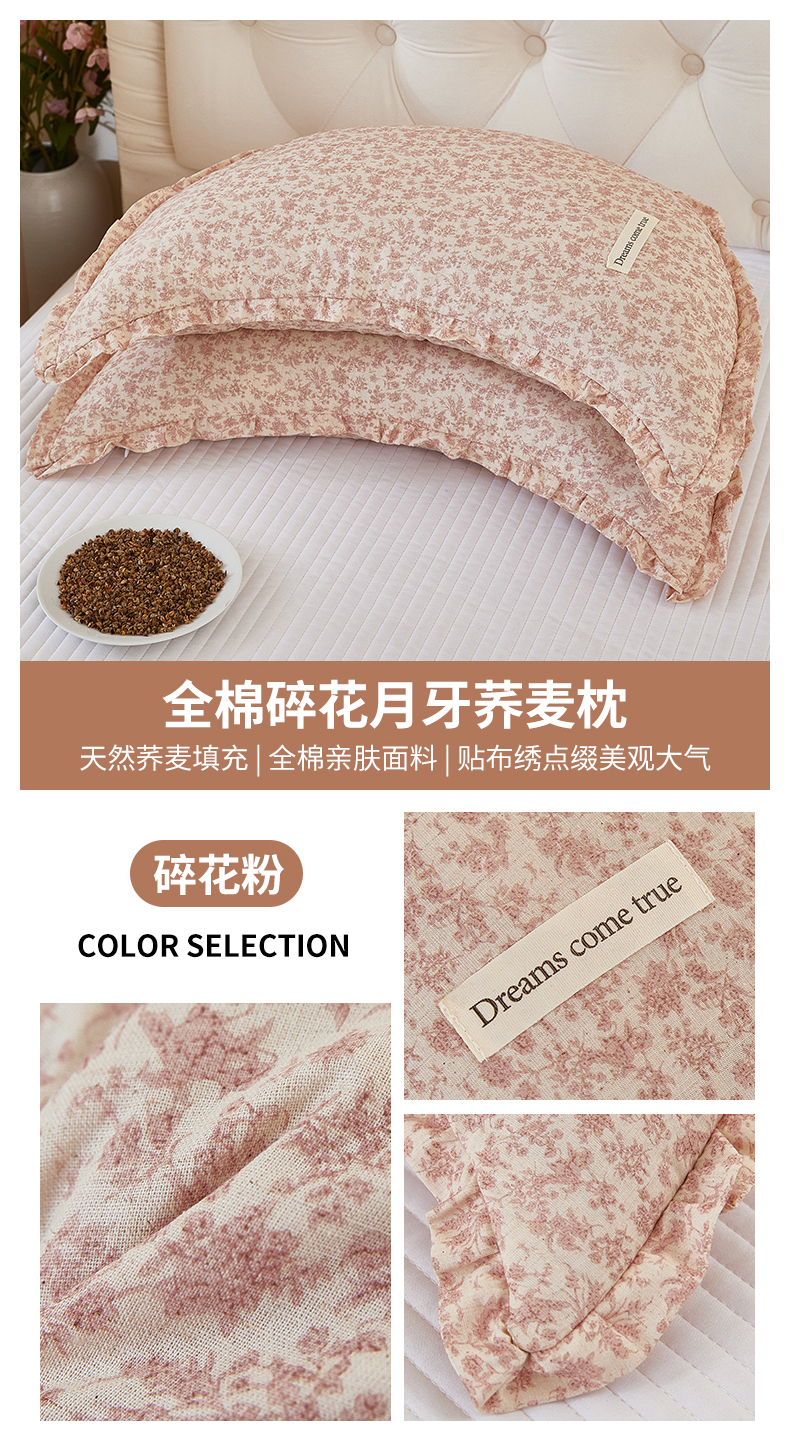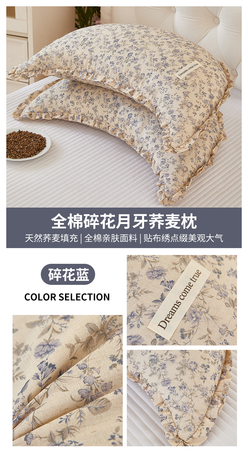 (总)梦叶草 2026新款全棉碎花月牙花边荞麦枕,全棉碎花月牙荞麦枕-碎花粉,全棉碎花月牙荞麦枕-碎花黄,全棉碎花月牙荞麦枕-碎花咖,全棉碎花月牙荞麦枕-碎花蓝,全棉碎花月牙荞麦枕-碎花紫