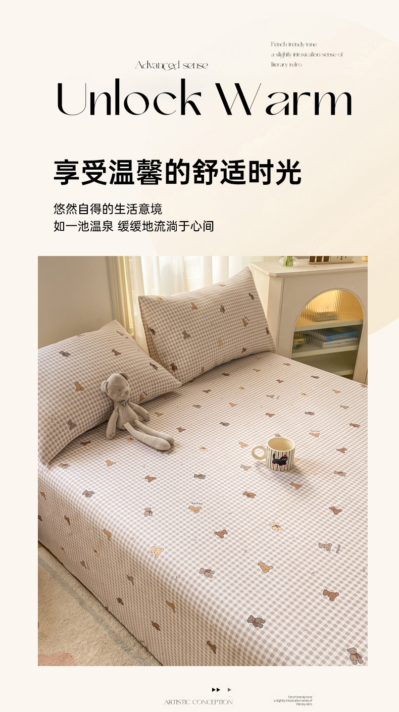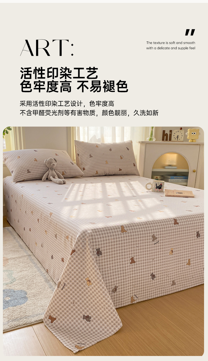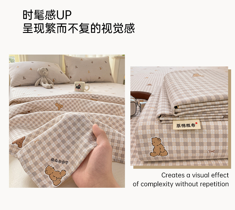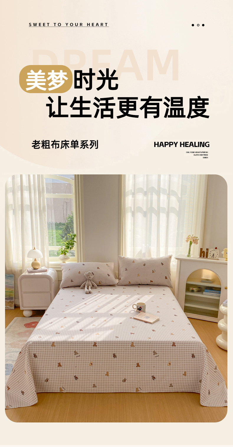 漫仙阁家纺 2026新款老粗布床单系列 开心熊