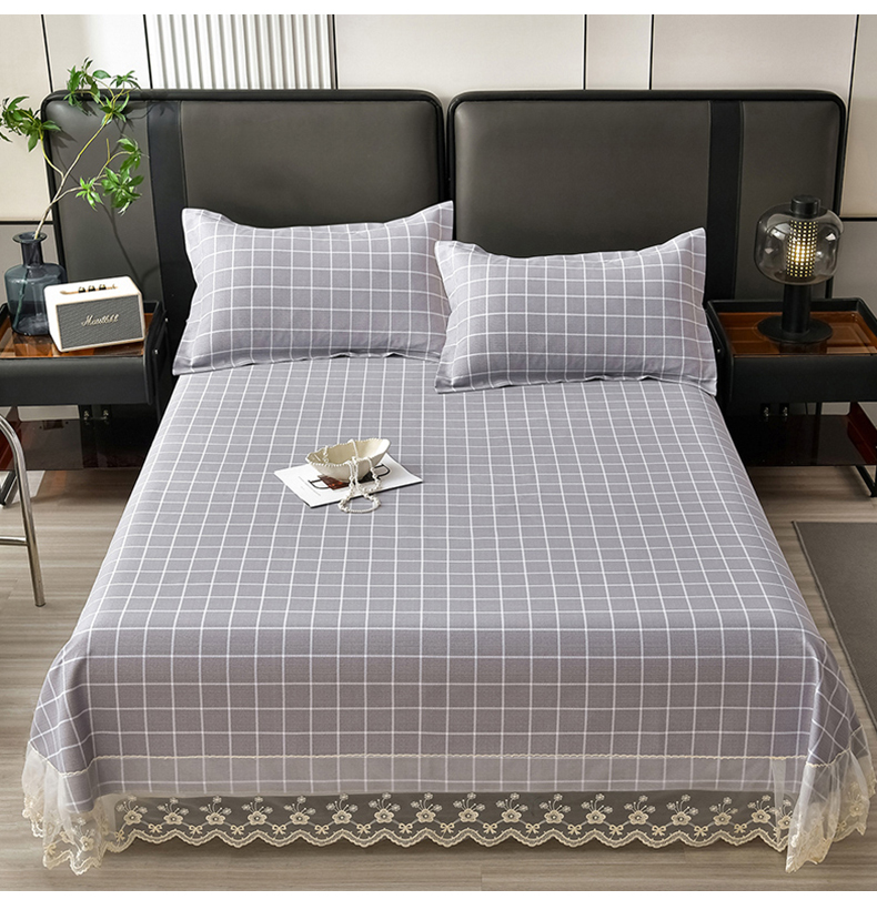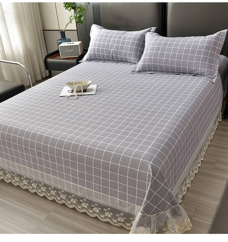 星窝家纺 2026新款花边老粗布凉席三件套 浅灰雅格