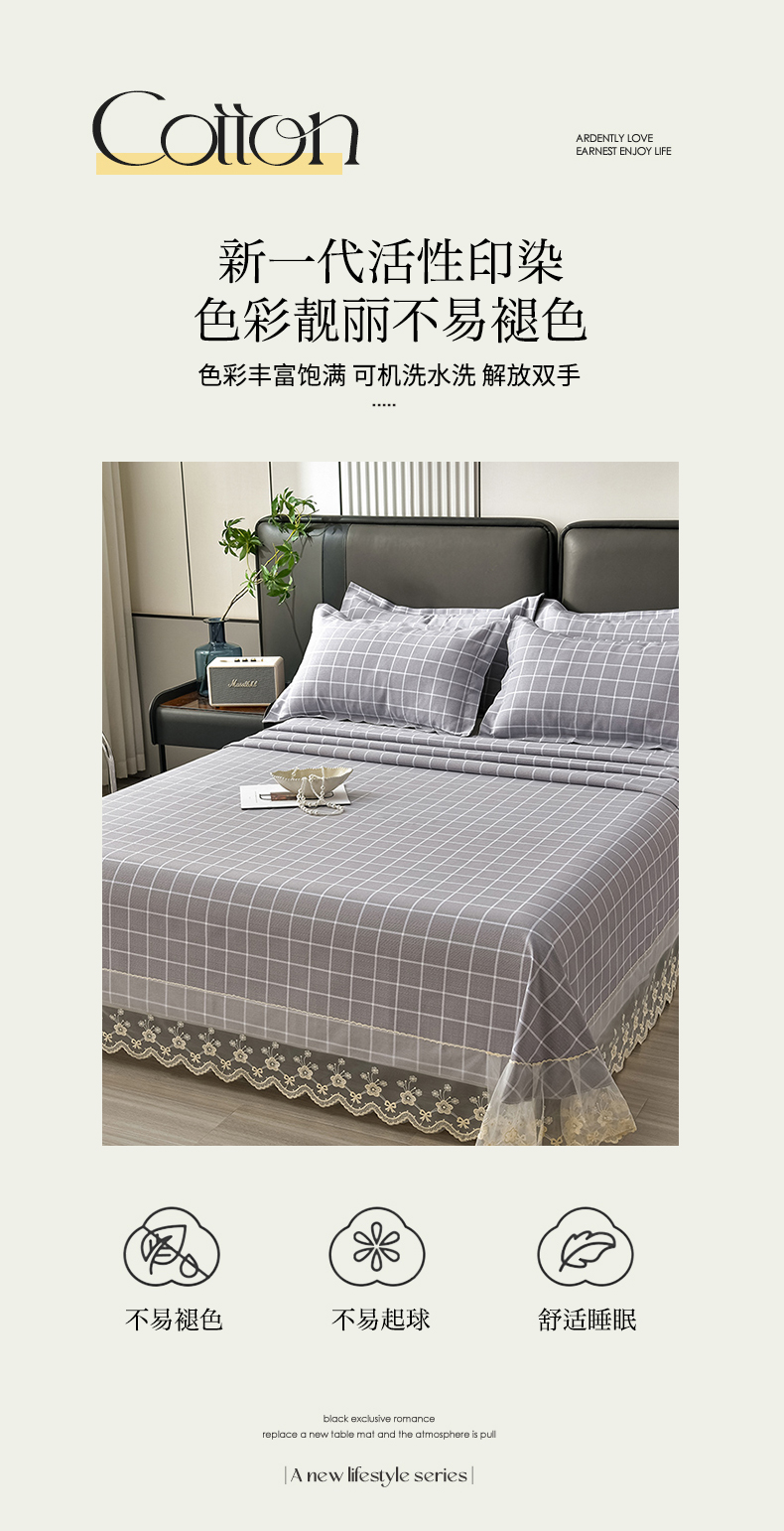 (总)星窝家纺 2025新款水洗棉花边床裙式多功能床盖三件套,经典豆绿,经典粉色,经典灰色,经典橘色,经典蓝色,经典奶白,经典紫色