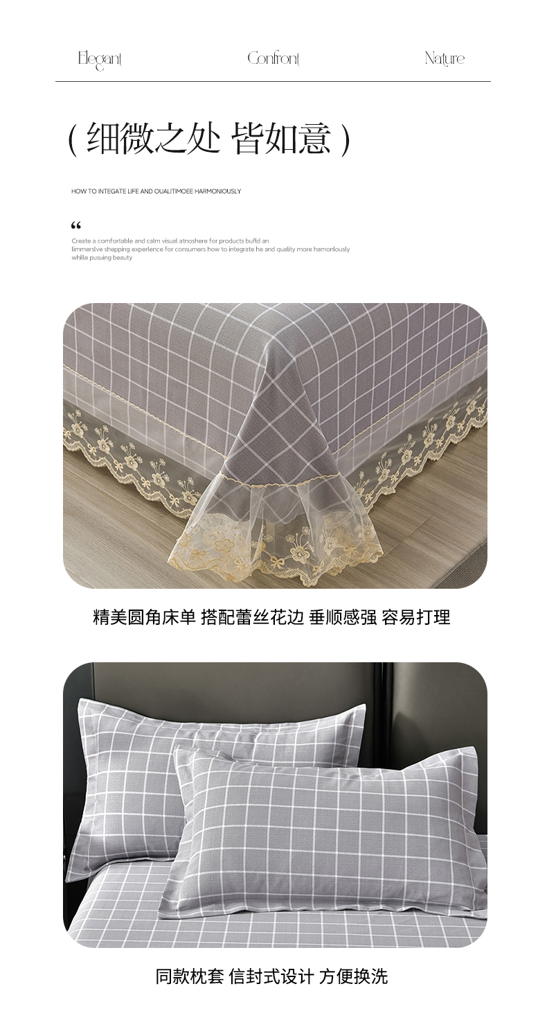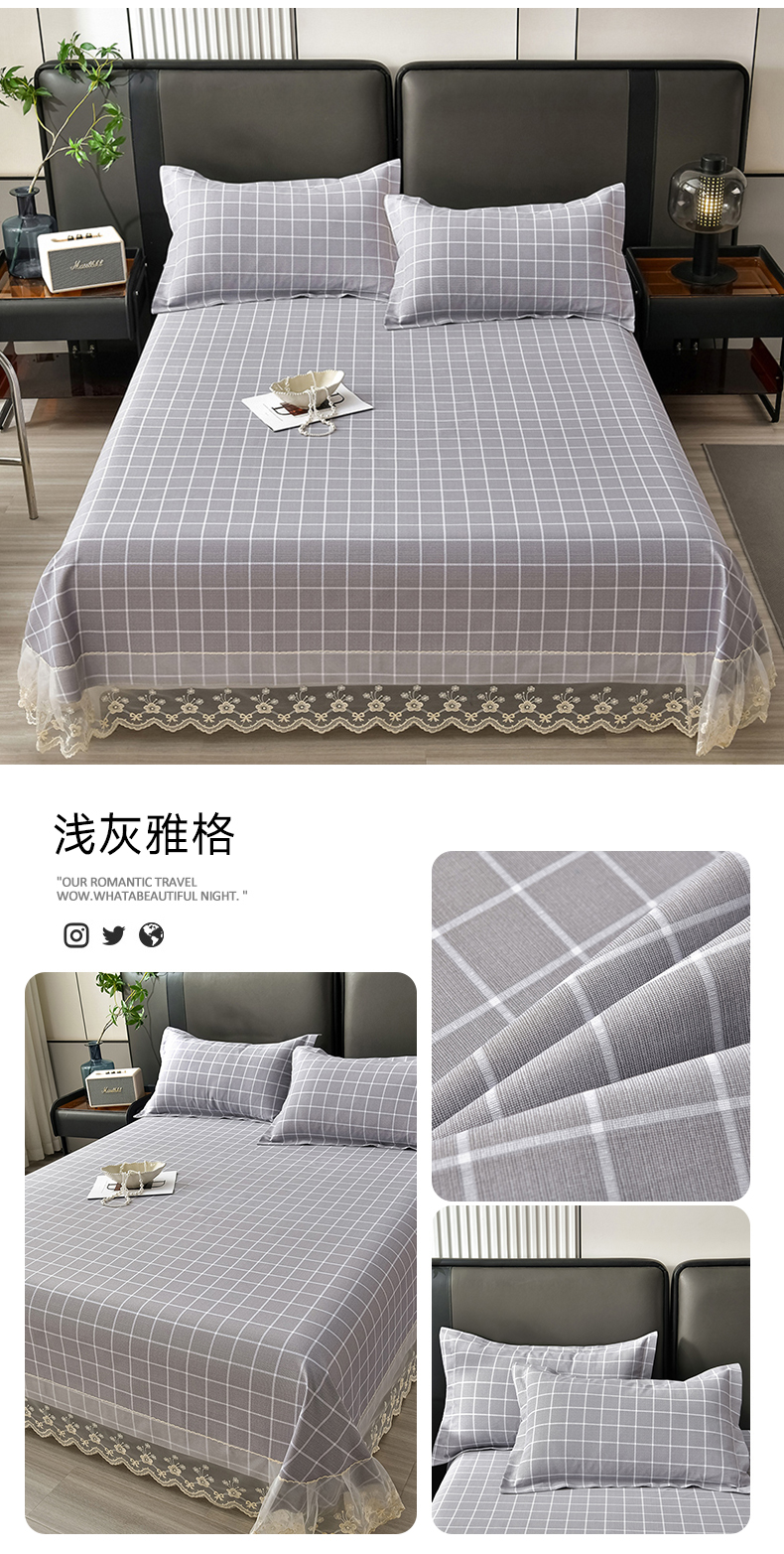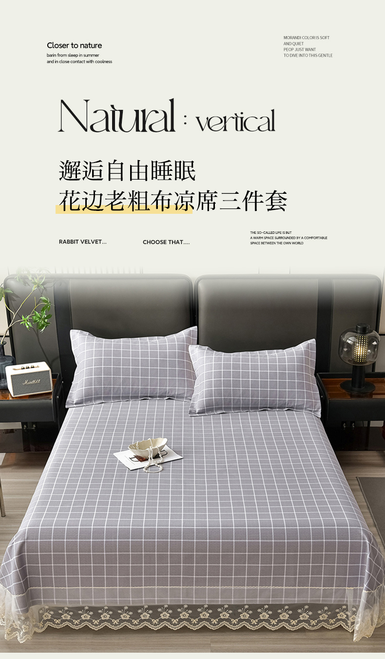 商品名称:星窝家纺 2026新款花边老粗布凉席三件套 浅灰雅格