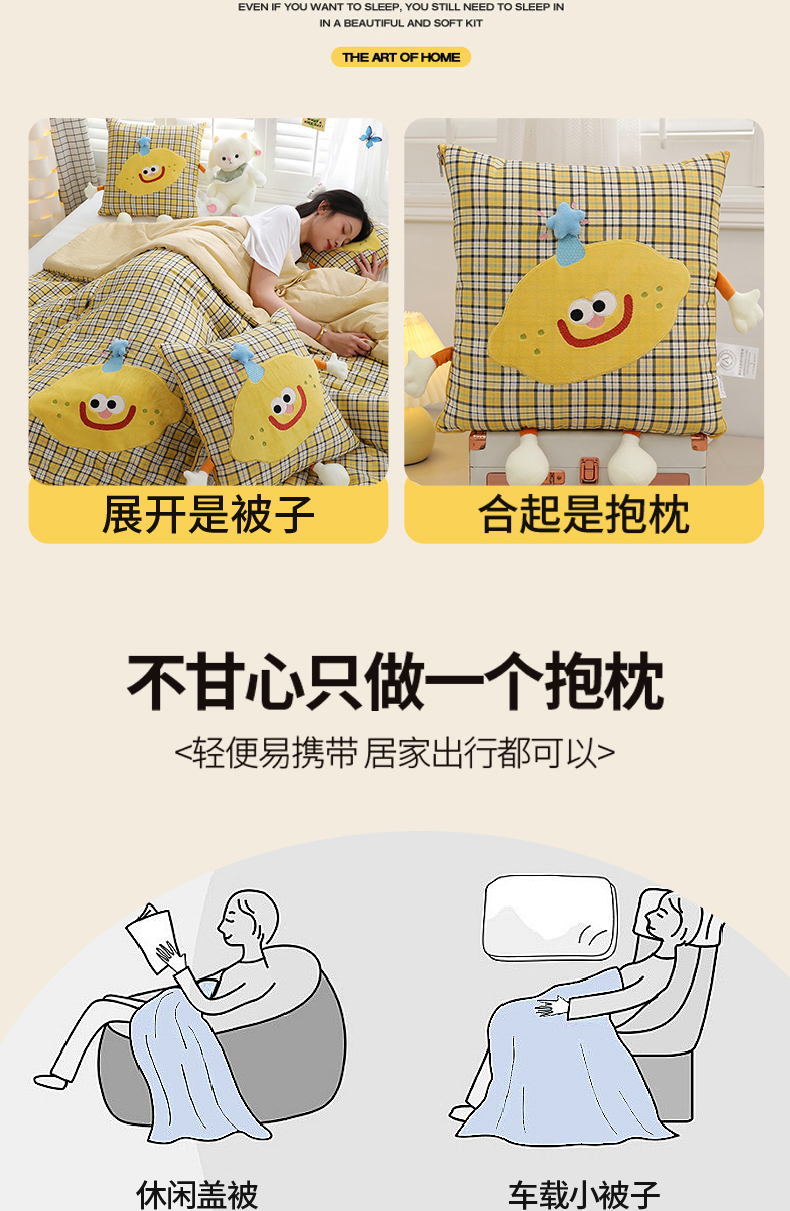 商品名称:(总)照世家纺 2026新款多功能抱枕被-芒里偷闲