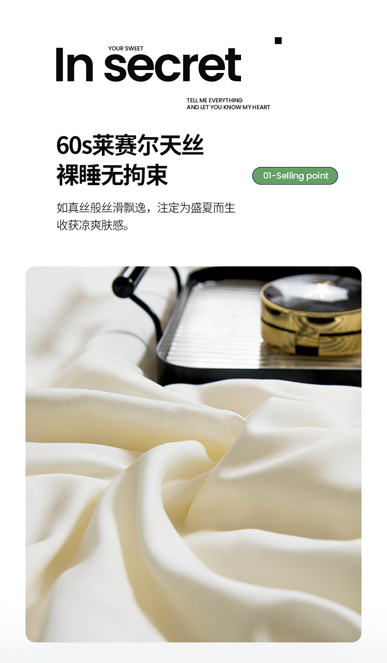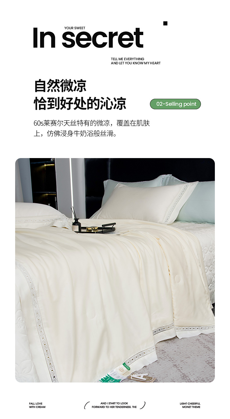 商品名称:(总)三俏家纺 2026新款60支兰精天丝A类镂空床盖款夏被四件套纯色20%大豆蛋白【包质检】