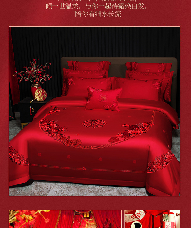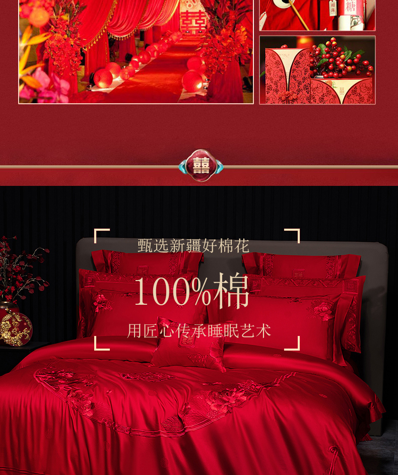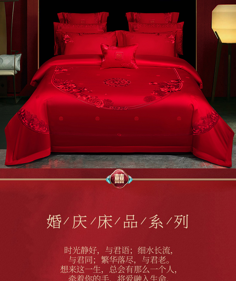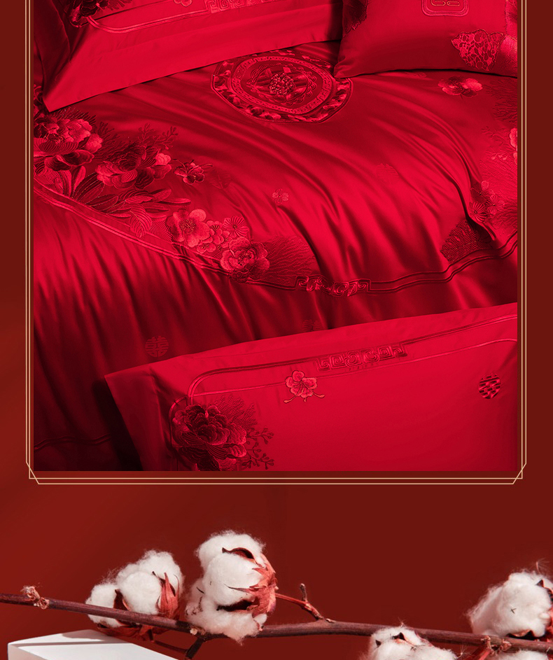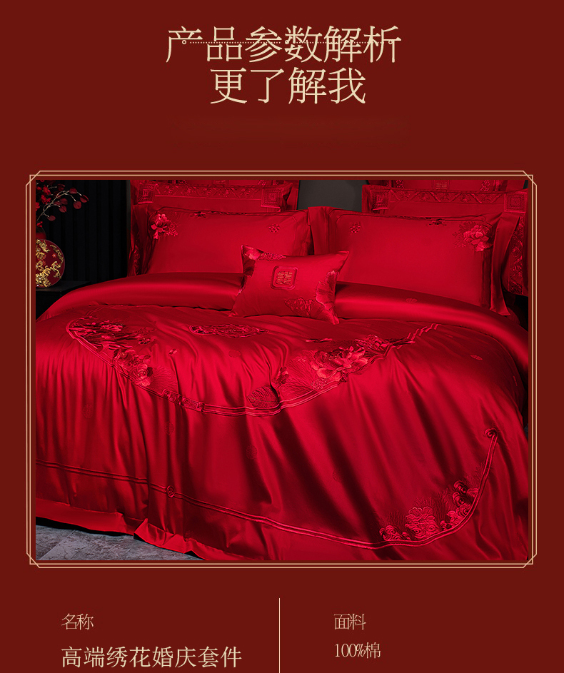 当前位置: 91家纺网 > 商品网购 > 床品套件 > 四件套 > 婚庆四件套 > 蒂爵 2026年重绣性价比款长绒棉提花全棉纯棉绣花婚庆四件套多件套大红色刺绣结床上用品 海韵丹姿红