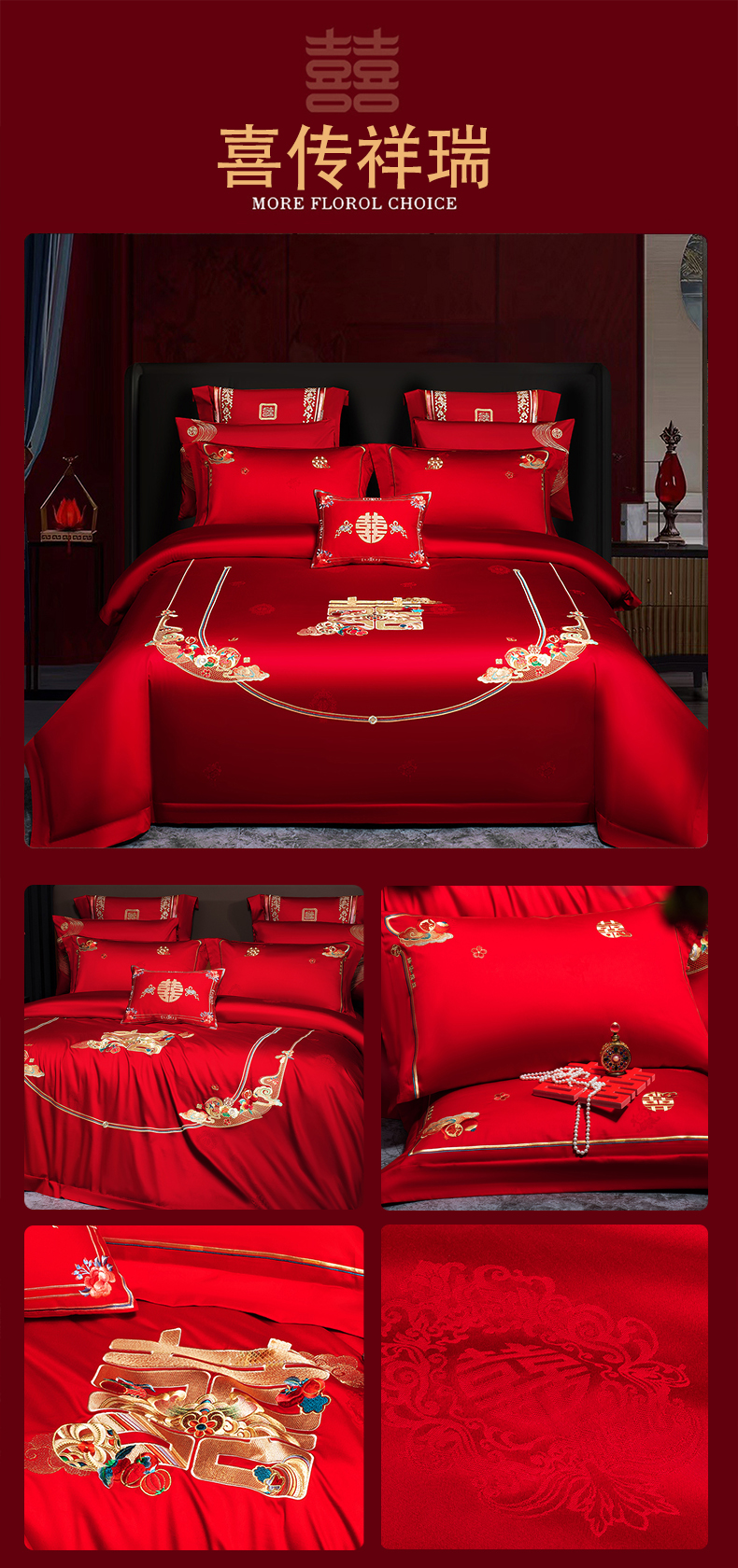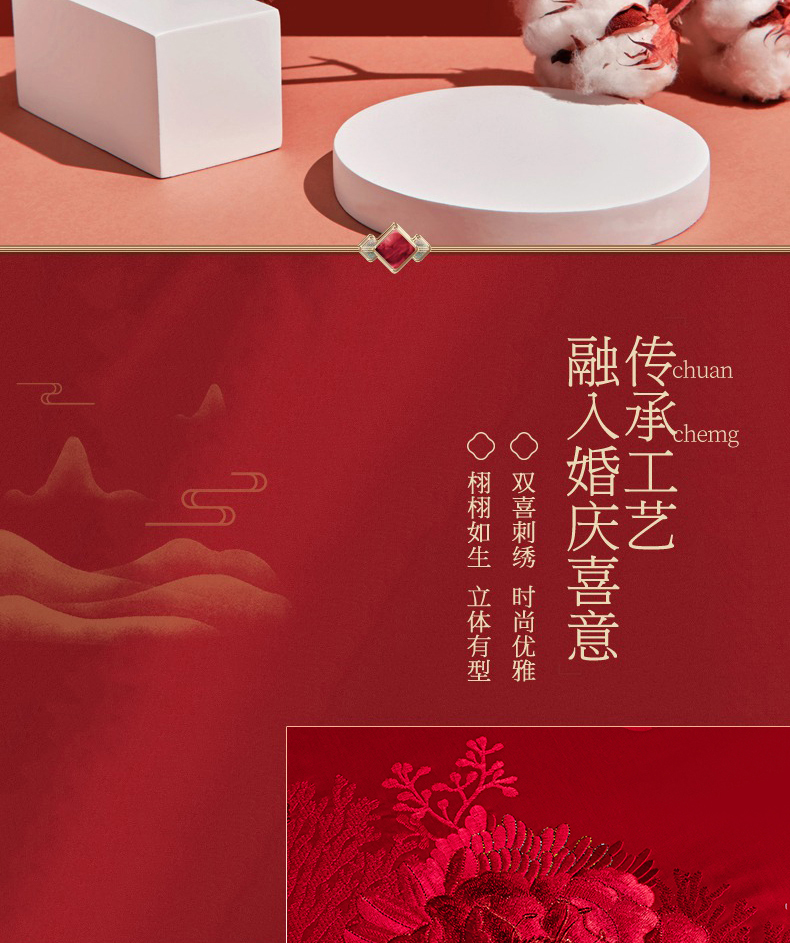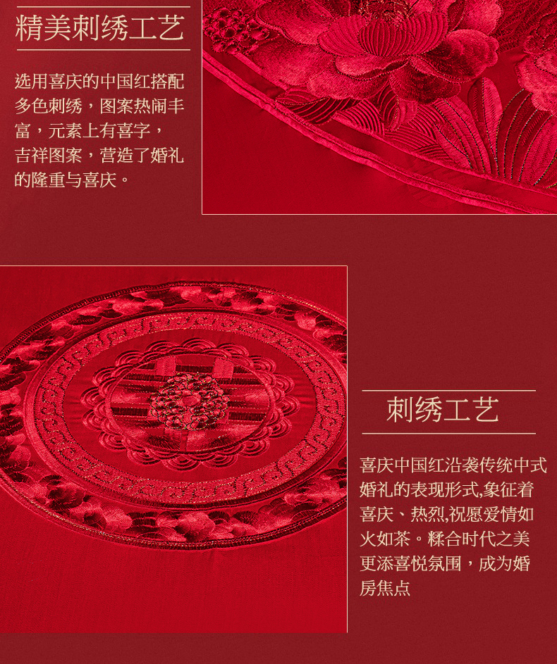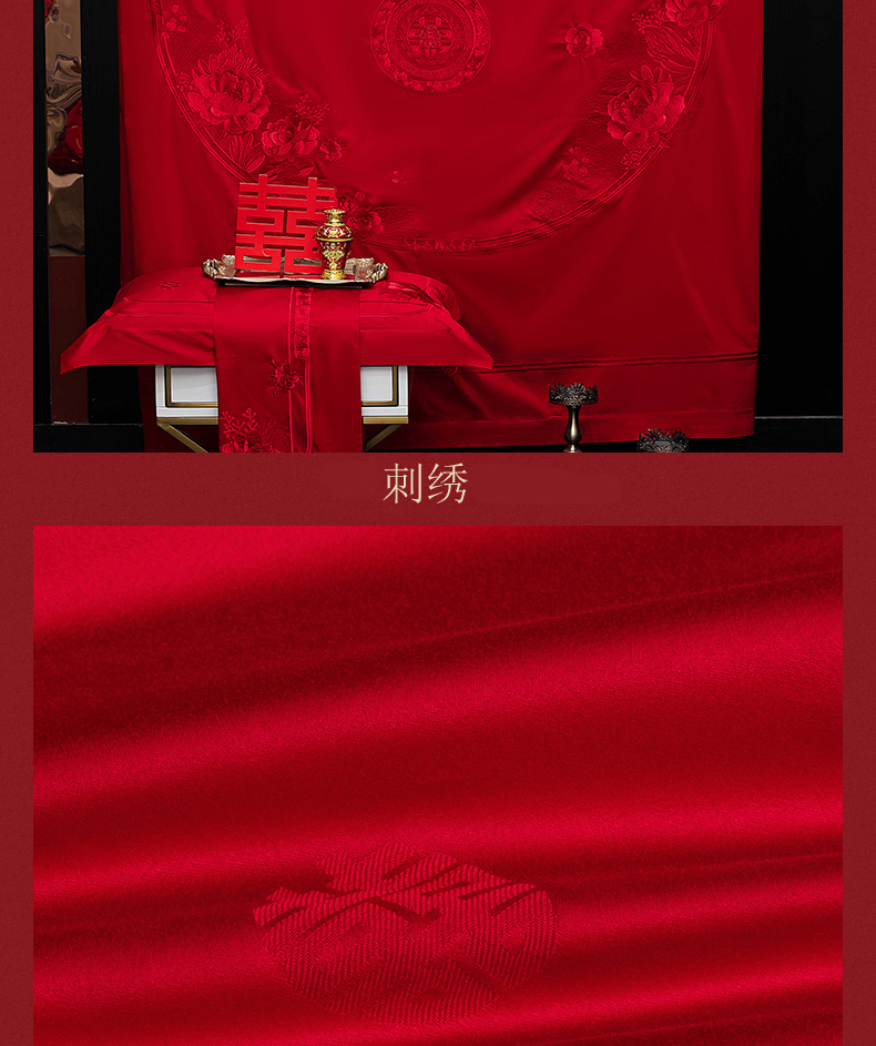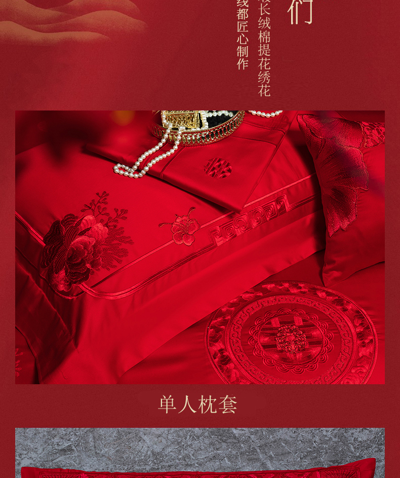 当前位置: 91家纺网 > 商品网购 > 床品套件 > 四件套 > 婚庆四件套 > 蒂爵 2026年重绣性价比款长绒棉提花全棉纯棉绣花婚庆四件套多件套大红色刺绣结床上用品 海韵丹姿红