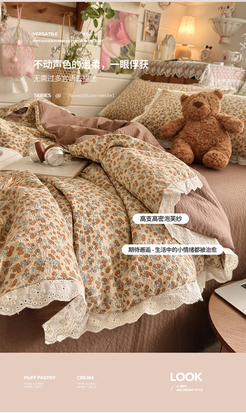 (总)初念 2025新款亲肤舒适双层纱云感纱小花边四件套-拾光,拾光-芭比兔,拾光-复古浪漫,拾光-花丛萌兔,拾光-花丛女孩,拾光-少女象,拾光-狮子唱片,拾光-思念女孩,拾光-星眠云野