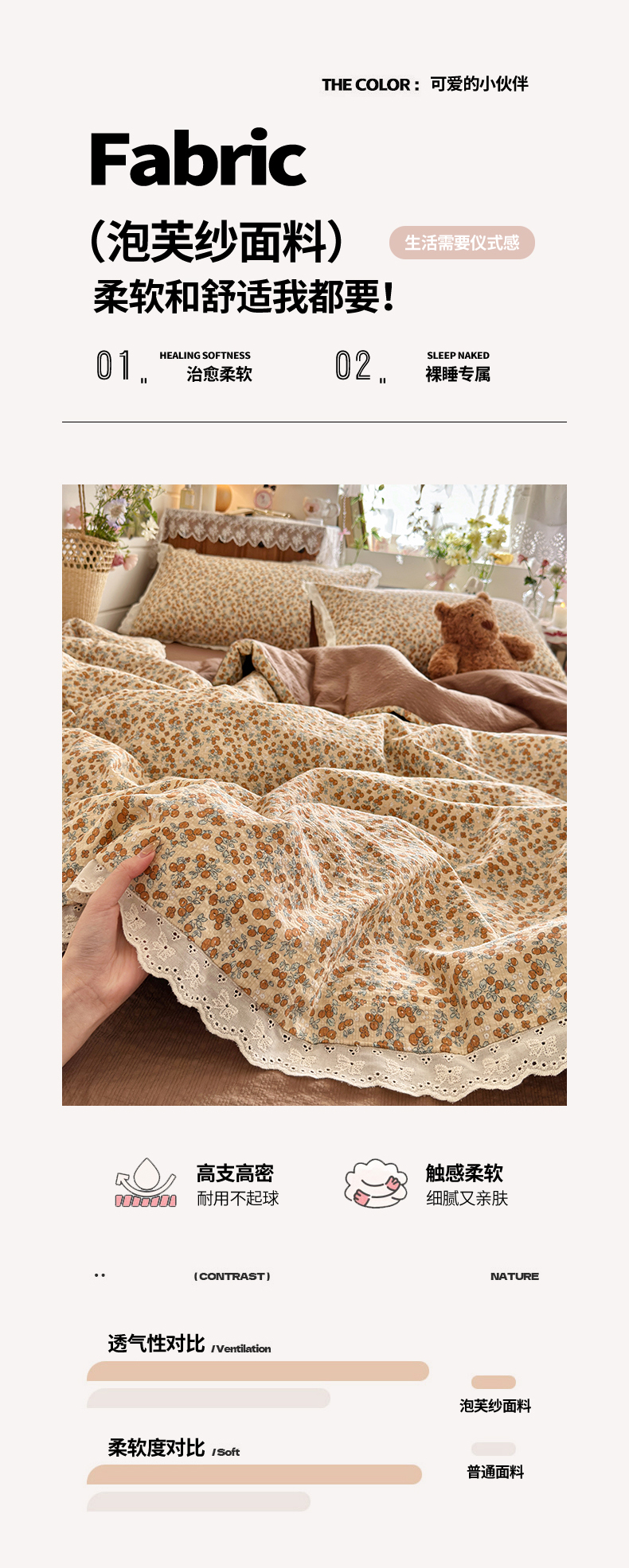 商品名称:初念 2026新款泡芙纱全花边夏被四件套 花笺-柔诗意